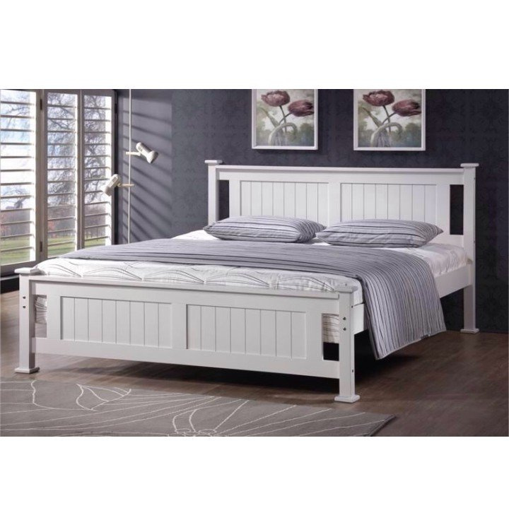Postel s roštem, borovicové dřevo/bílá, 160x200, LUCAS NEW