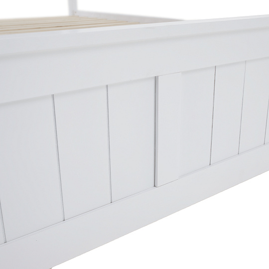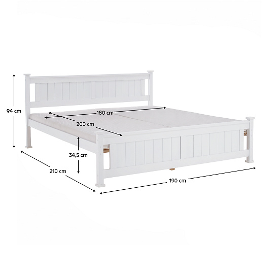 Postel s zarolovaným roštem LUCAS NEW Materiál: borovicové dřevo / MDF / překližka Barva: bílá Rozměry (ŠxHxV): 190x210x94 cm Plocha na spaní: 180x200 cm Výška po rošt: 34,5 cm Tloušťka materiálu: 20 mm Tloušťka materiálu nohou (ŠxH): 50x50 mm Možnost dokoupit matraci s rozměrem 180x200. Nosnost na lůžko: 100 kg Dodávané v demontu.