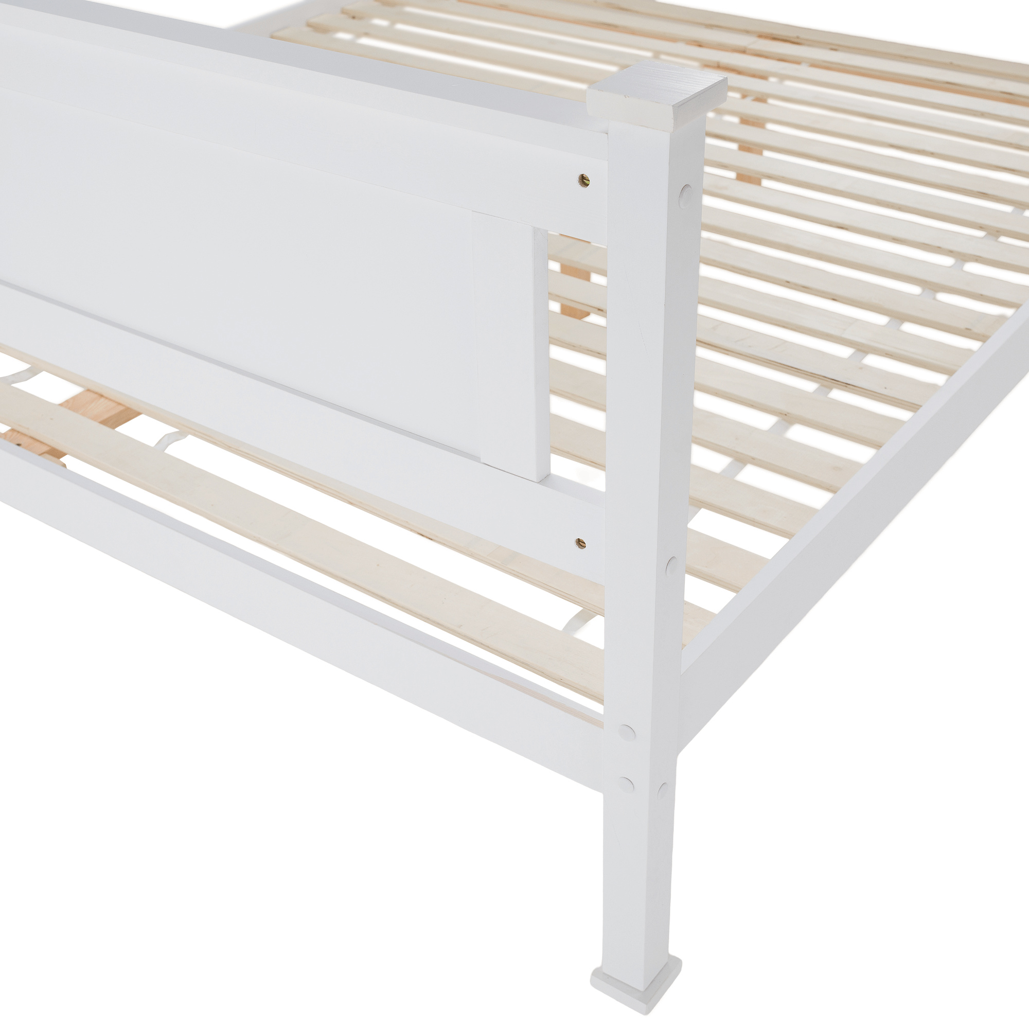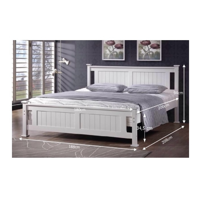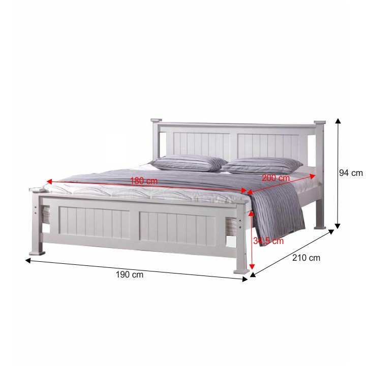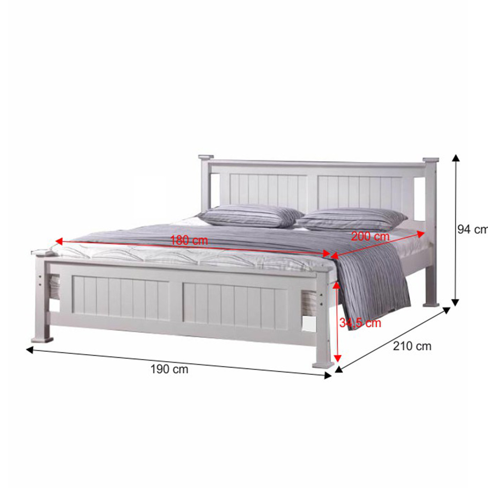 Postel s zarolovaným roštem LUCAS NEW Materiál: borovicové dřevo / MDF / překližka Barva: bílá Rozměry (ŠxHxV): 190x210x94 cm Plocha na spaní: 180x200 cm Výška po rošt: 34,5 cm Tloušťka materiálu: 20 mm Tloušťka materiálu nohou (ŠxH): 50x50 mm Možnost dokoupit matraci s rozměrem 180x200. Nosnost na lůžko: 100 kg Dodávané v demontu.