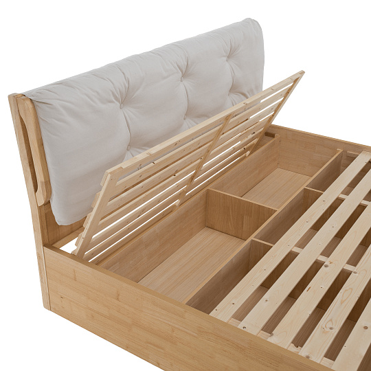 Materiál: látka/kaučukové dřevo/novozélandská borovice Oděruodolnost textilie podle testu Martindale: 10 000 oděrů Barva: přírodní Rozměry (ŠxHxV): 161x208,8x98 cm Plocha na spaní (ŠxD): 160x200 cm Nosnost na osobu: 150 kg Výška bočnice: 35 cm Výška po rošt: 33 cm Úložný prostor 5 odkládacích ploch Výška úložného prostoru: 24 cm Dodávána s laťkovým roštem Vyklápěcí rošt Tloušťka lamel: 1,4 cm Dodáváno bez matrace Doporučená výška matrace: 10-15 cm Prostor mezi roštem a čalouněním (opěrkou): 15 cm Možnost zakoupit matraci o rozměru 160x200 cm Moderní design Dodáváno v demontu