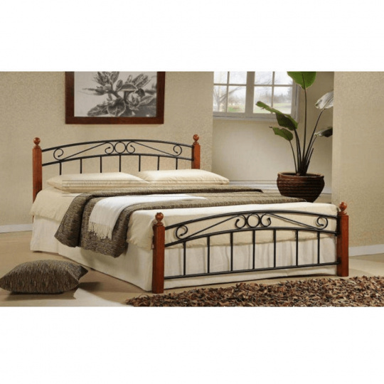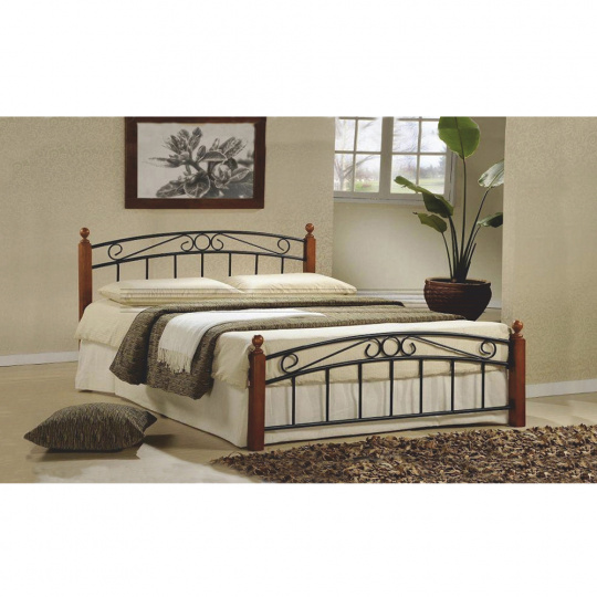 Manželská postel, třešeň / černý kov, 140x200, DOLORES
