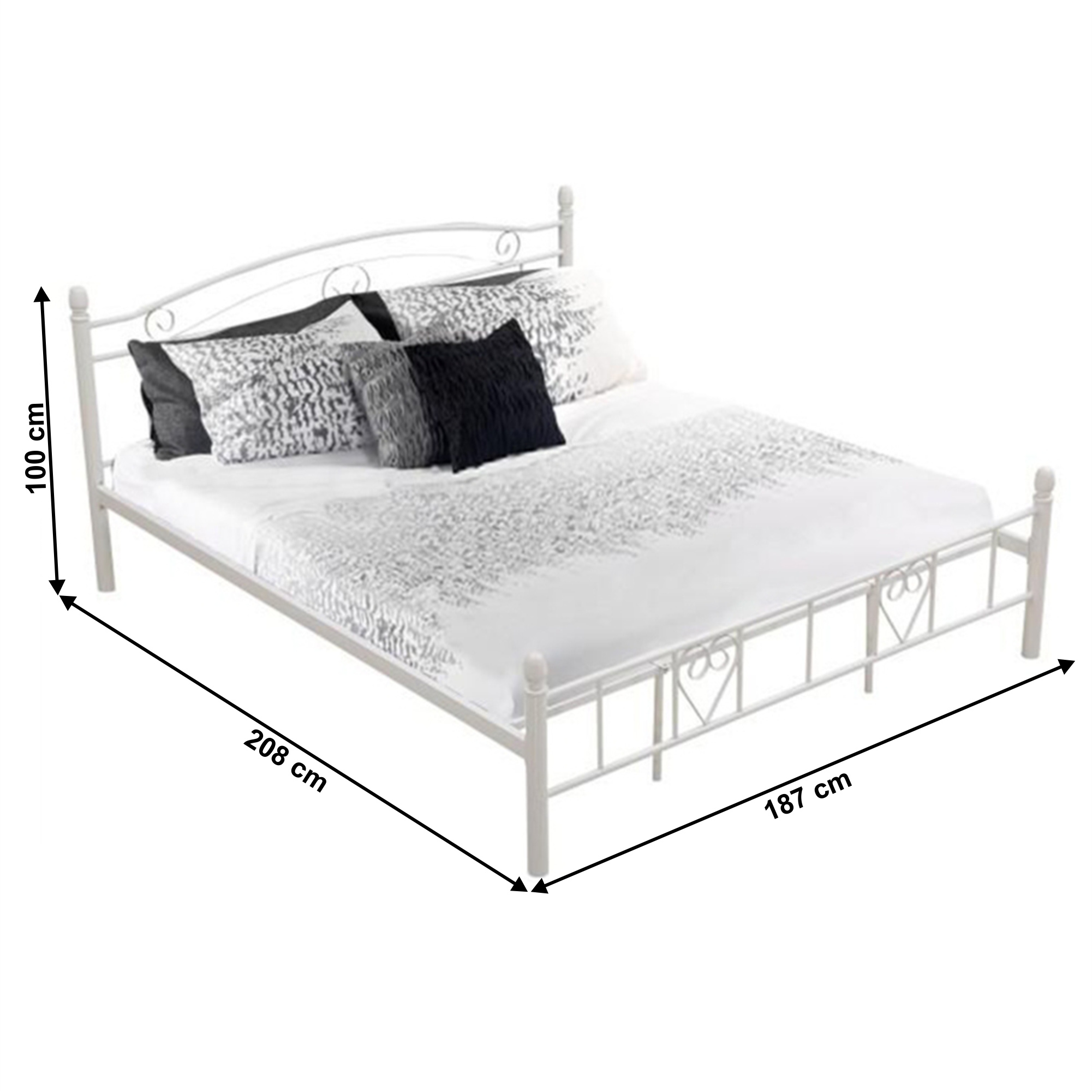 Postel BRITA NEW Materiál: kov Provedení: bílá Rozměry (ŠxHxV): 187x208x100 cm Plocha na spaní: 180x200 cm Výška po rošt: 30 cm Nosnost na jedno lůžko: 100 kg S lamelovým roštem Možnost dokoupit bonelovou matraci v rozměru 180x200 cm Dodáváno v demontu