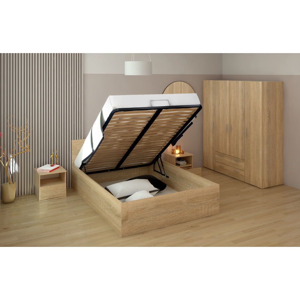 Materiál: laminovaná DTD Barva: dub sonoma Rozměry (ŠxHxV): 143,6x203,2x78,7 cm Rozměry plocha na spaní (ŠxD): 140x200 cm Tloušťka laminované DTD: 1,6 cm Výška po rošt: 24,1 cm Výška bočnice: 39,9 cm Doporučená minimální výška matrace: 10 cm Jednolůžkový S úložným prostorem Výška otevřené postele: 141 cm Nosnost na osobu: 90 kg Dodáváno s kovovým roštem Rošt je dodáván v montě Dodáváno bez matrace Možnost zakoupit matraci z naší nabídky Moderní design Kvalitní slovenský výrobek Dodáváno v demontu