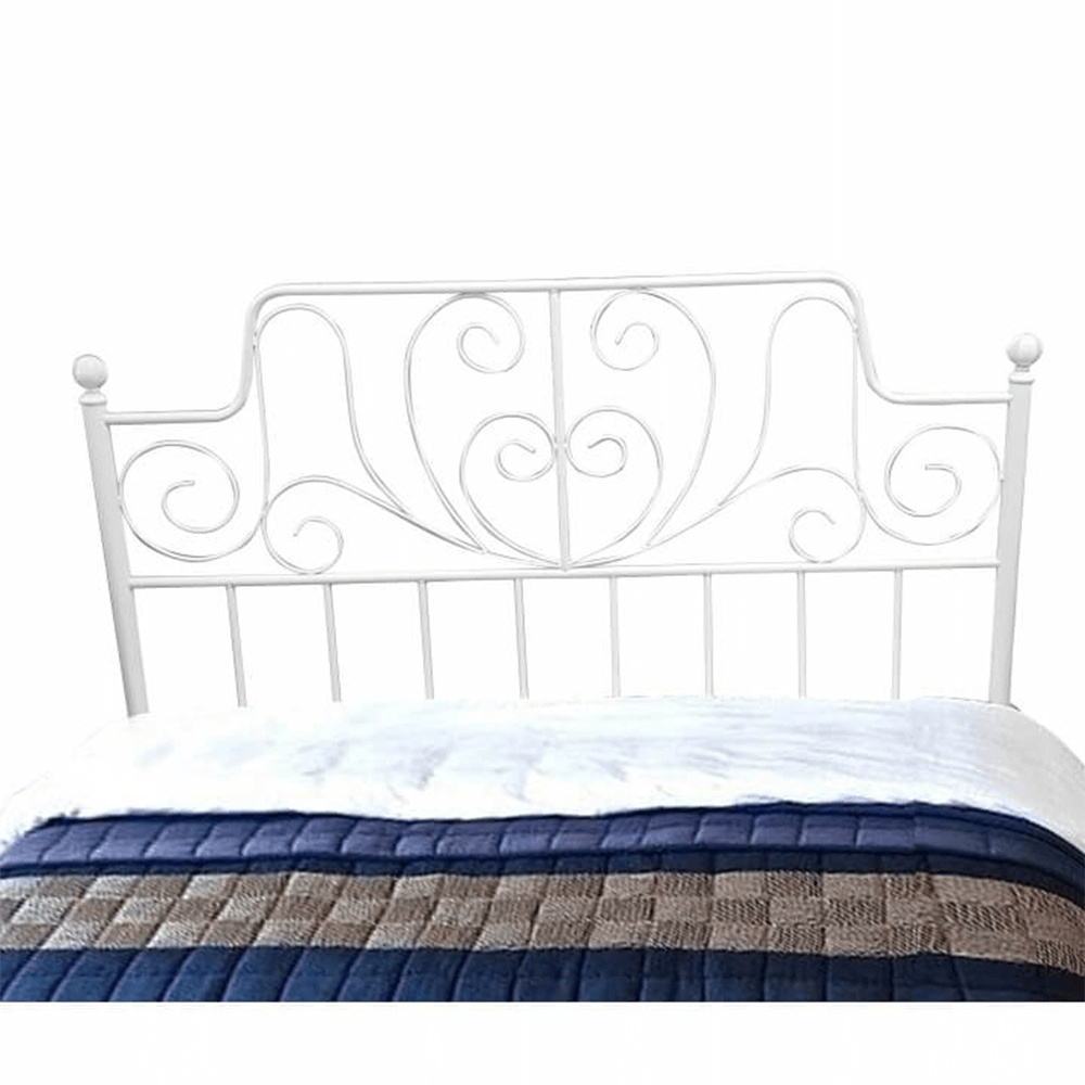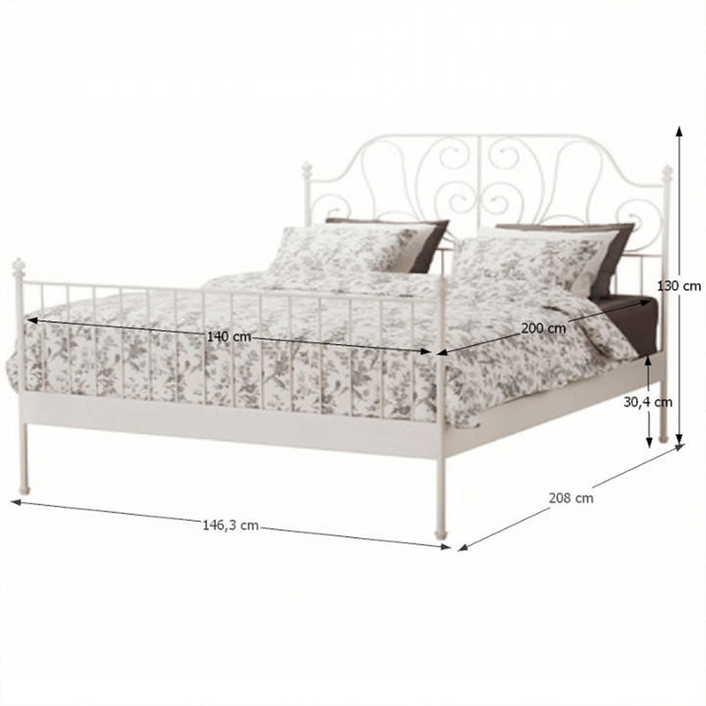 Kovová postel s lamelovým roštem BEHEMOTH Vnější rozměry: (ŠxHxV): 146,3x208x130 cm. Plocha na spaní: 140x200 cm. Nosnost: 100 kg Materiál: kov - bílá barva. Výška rámu: 30,4 cm. Možnost dokoupení matrace z naší nabídky.