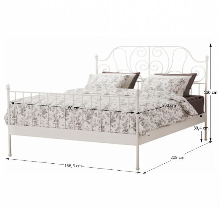 Kovová postel s lamelovým roštem BEHEMOTH Vnější rozměry: (ŠxHxV): 166,3x208x130 cm. Plocha na spaní: 160x200 cm. Materiál: kov - bílá barva. Výška rámu: 30,4 cm. Nosnost: 110 kg Možnost dokoupení matrace z naší nabídky.
