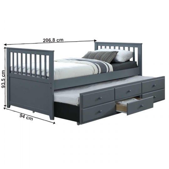 Postel s přistýlkou, 90x200, šedá, AUSTIN NEW