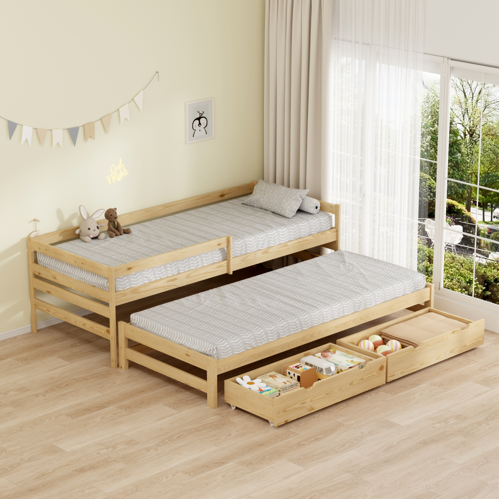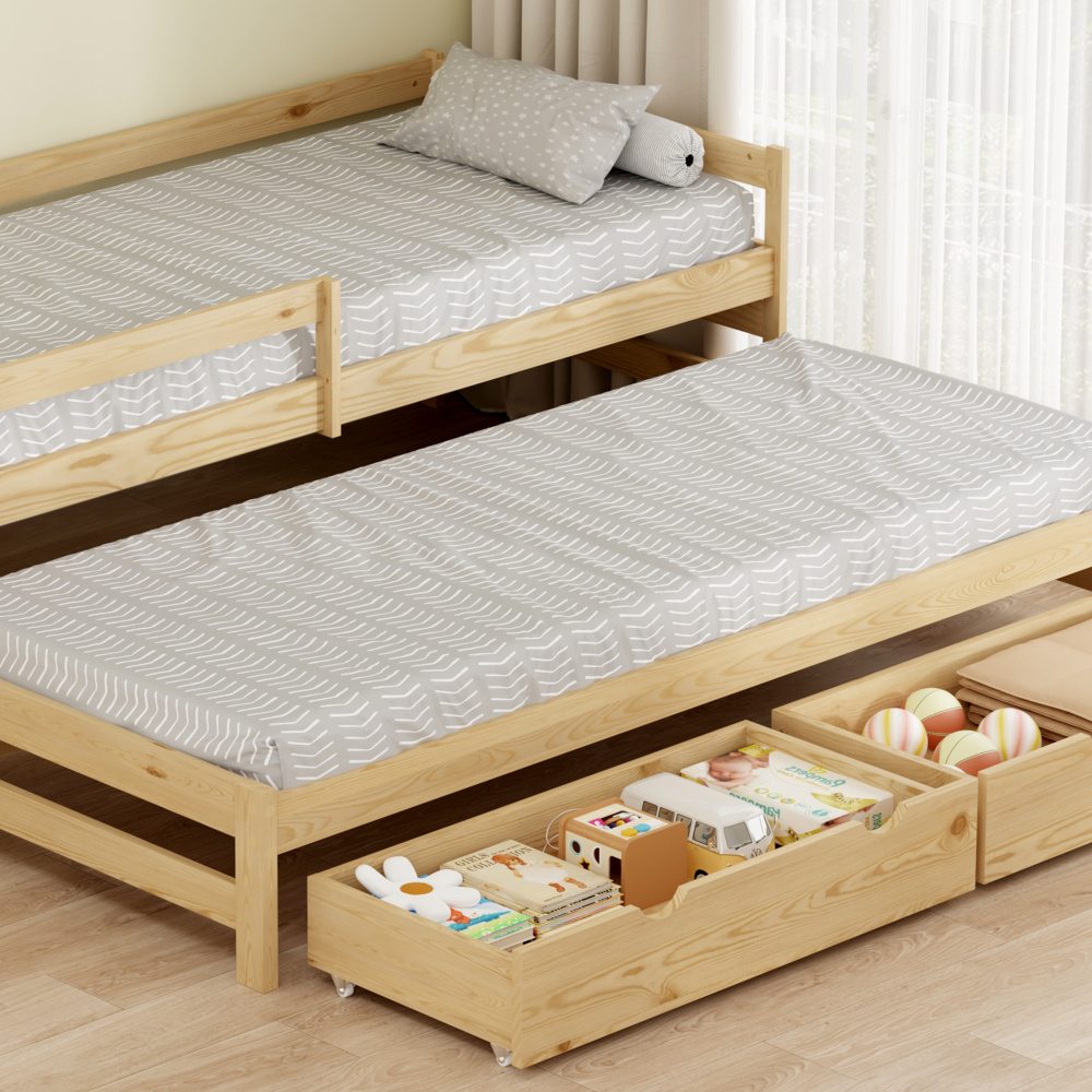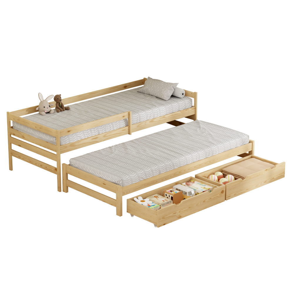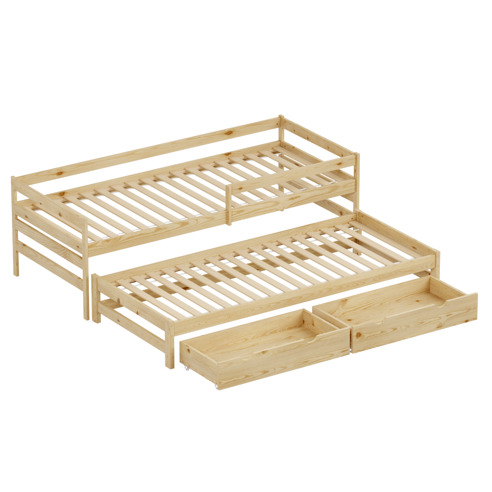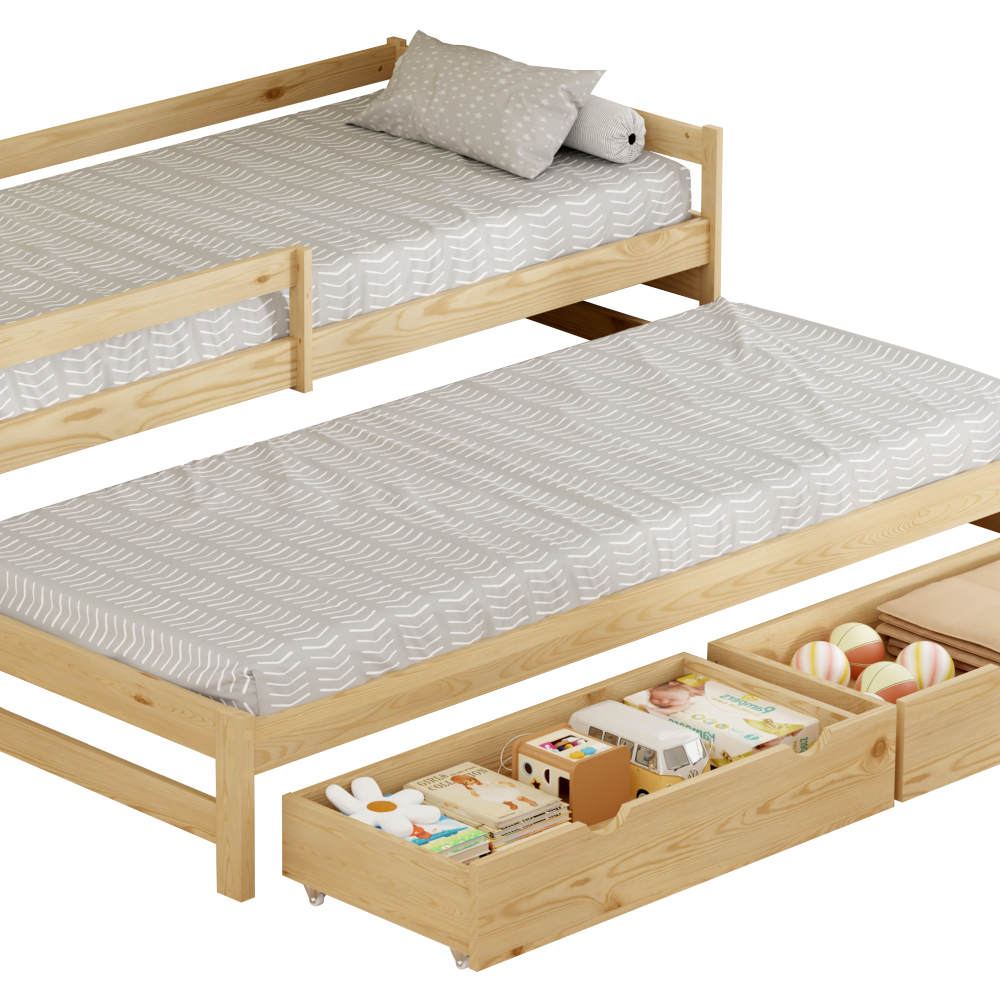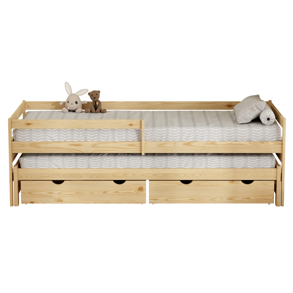 Postel s přistýlkou a úložným prostorem, 90x200, přírodní, ELARA