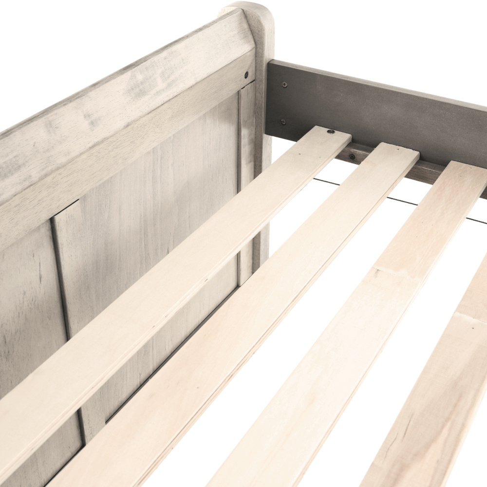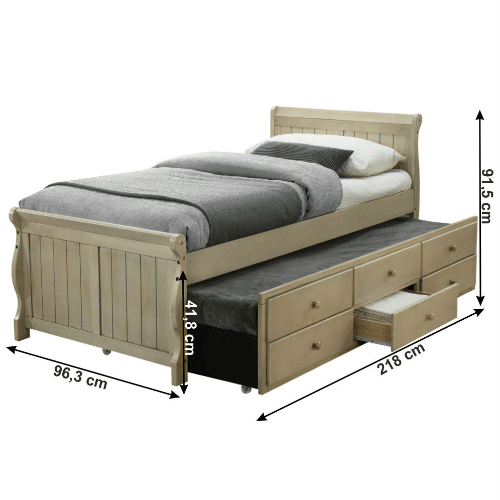 Materiál: masiv / MDF Barva: antická bílá Rozměry (ŠxHxV): 218x96,3x91,5 Plocha na spaní (ŠxH): 90x200 cm Matrace s max. výškou na Přistýlka: 12 cm Výška po rošt horní lůžko: 41,8 cm Výška po rošt spodní lůžko: 25,5 cm Dodávané s laťkový rošt Nosnost: 110 kg S přistýlkou 3 šuplíky Dodávané bez matrace Možnost zakoupit matrace z naší nabídky Dodávané v demontu
