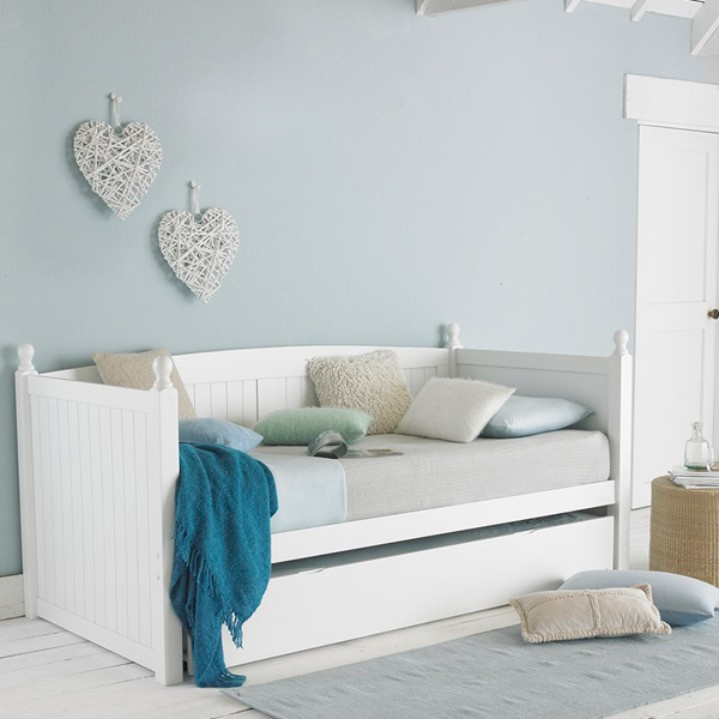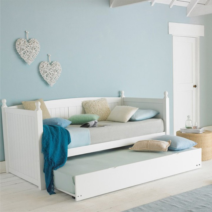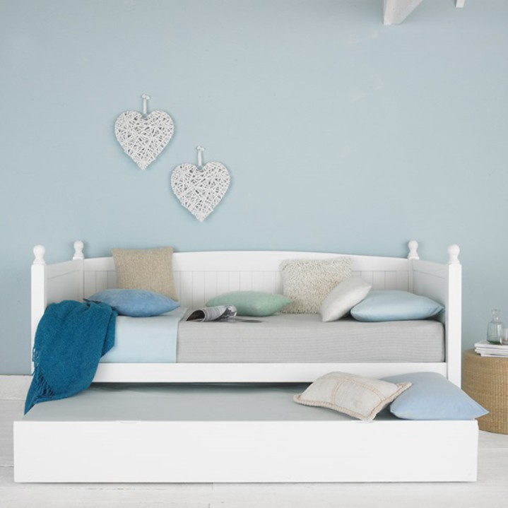 Postel s přistýlkou, borovicové dřevo, bílá, 90x200, GLAMIS