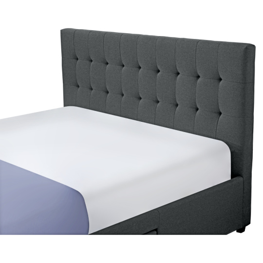 Materiál: melaminová MDF/velvet látka Oděruodolnost textilie podle testu Martindale: 80 000 oděrů Barva: šedá Rozměry (ŠxHxV): 190x218x105 cm Plocha na spaní (ŠxD): 180x200 cm Výška po rošt: 31,2 cm Výška bočnice: 30 cm Zapuštění matrace: 3,8 cm Nosnost na osobu: 250 kg Na nožičkách Výška nožiček: 5 cm Barva nožiček: černé Materiál nožiček: borové dřevo S úložným prostorem Čtyři šuplíky Vnitřní rozměry menší zásuvky (ŠxHxV): 58x48x14 cm Vnitřní rozměry větší zásuvky (ŠxHxV): 74x48x14 cm Nosnost šuplíku: 8 kg Dodávána s lamelovým roštem Prostor mezi lamelami: 5 cm Dodávána bez matrace Doporučujeme zakoupit matraci z naší nabídky Doporučená Max. výška matrace: 20 cm S vysokým čelem Dekorativní prošívané čelo Elegantní Čalouněná Dodáváno v demontu