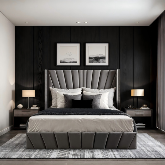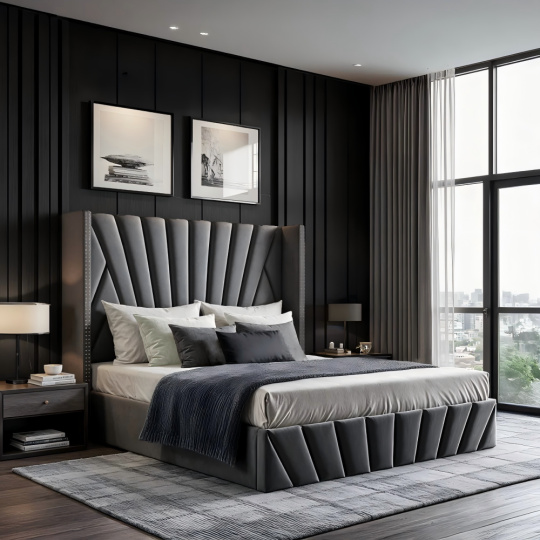 Materiál: látka Velvet/MDF/překližka/kov Oděruodolnost textilie podle testu Martindale: 25 000 - 30 000 oděrů Barva: tmavě šedá Rozměry (ŠxHxV): 201x219x140 cm Plocha na spaní (ŠxD): 180x200 cm Výška po rošt: 33 cm Nosnost na lůžko: 110 kg S vysokým čelem Výška bočnice: 35 cm Výška zadní čelo: 140 cm Prošívané čelo S úložným prostorem Dodáváno s vyklápěcím lamelovým roštem Prostor mezi lamelami: 5,5 cm Plynové písty Dodáváno bez matrace Možnost zakoupit matrace z naší nabídky Doporučená výška matrace: 20 cm Zapuštění matrace: 2 cm Elegantní design Dodáváno v demontu