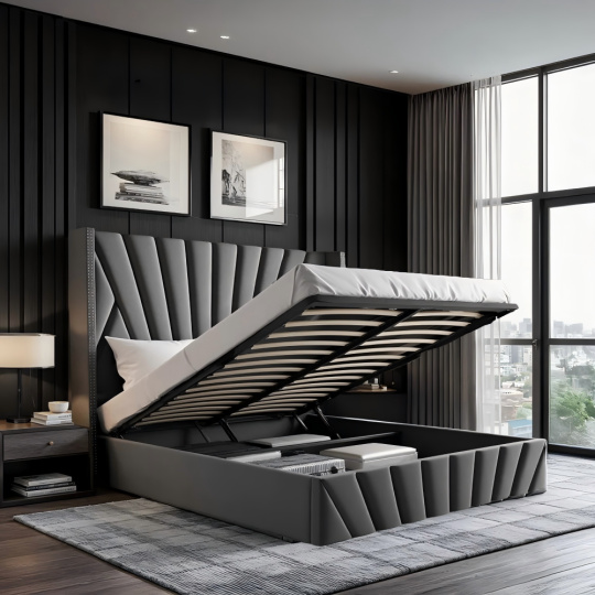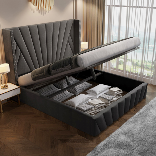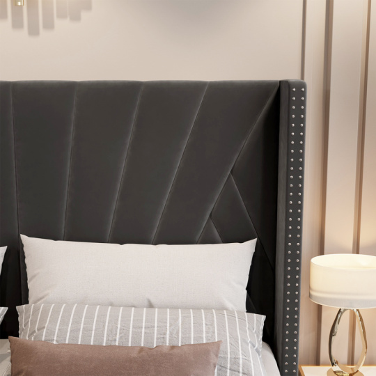 Postel s roštem, 180x200, tmavě šedá Velvet látka, PENELOPE