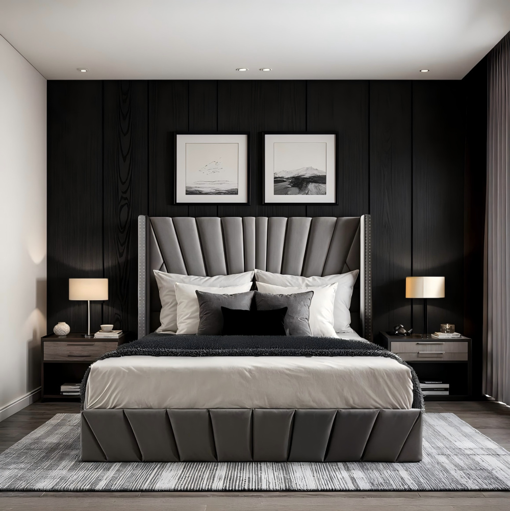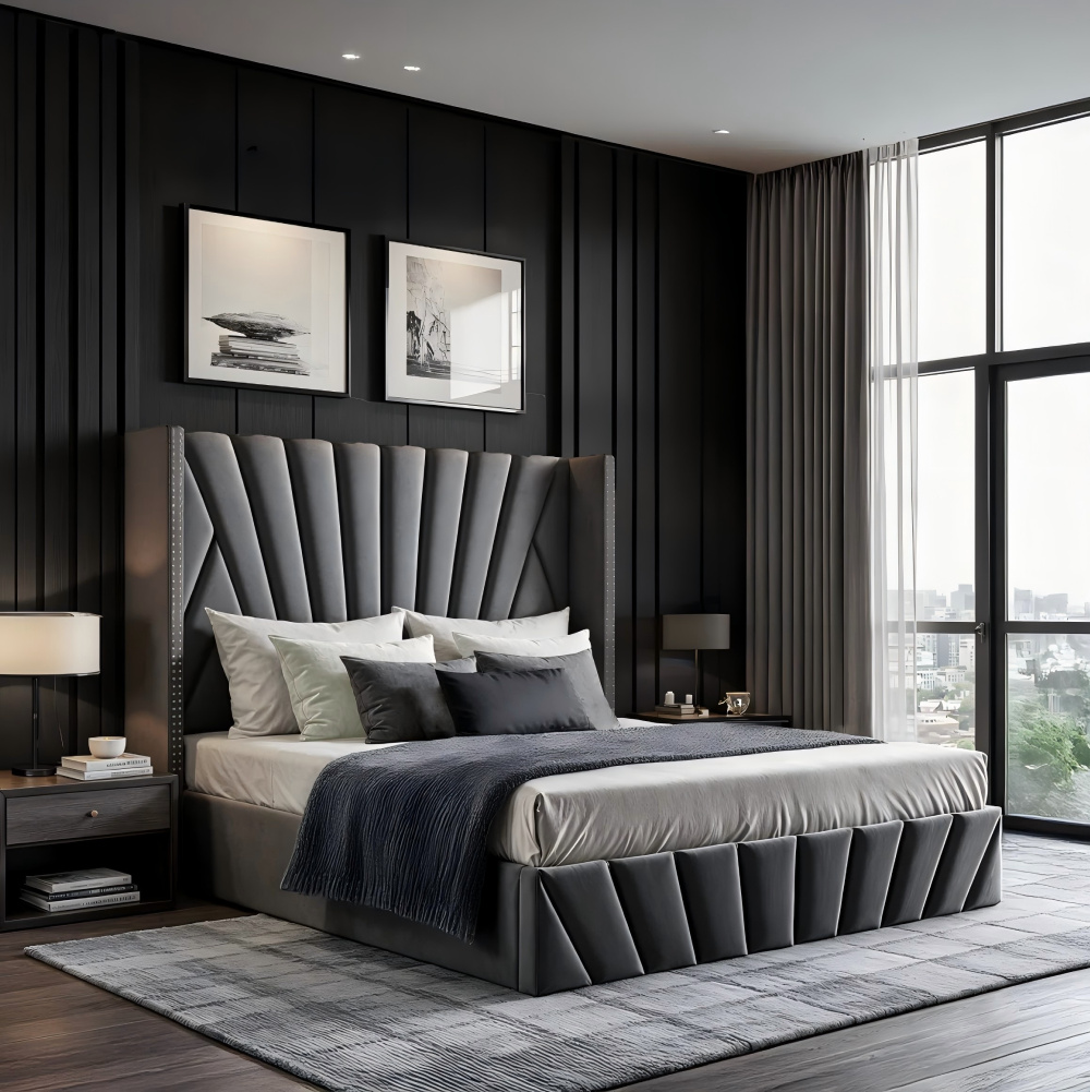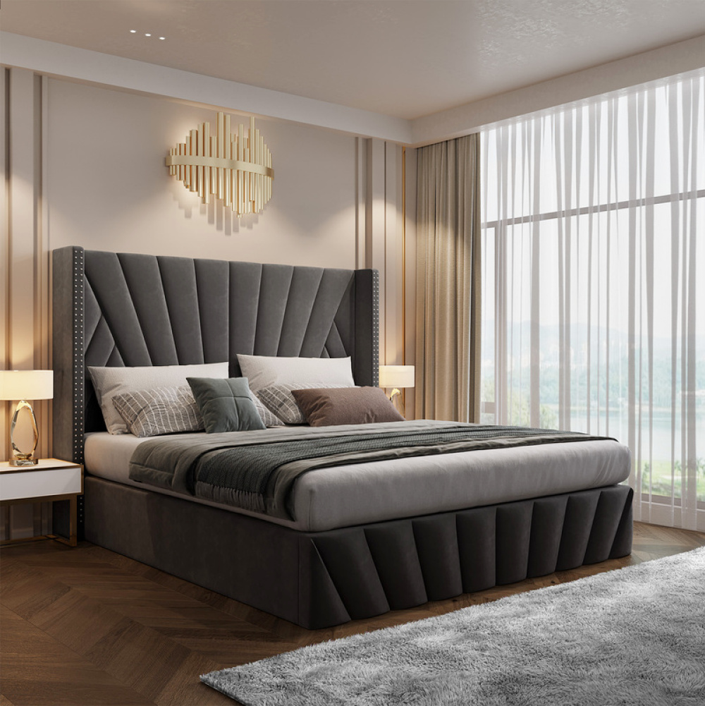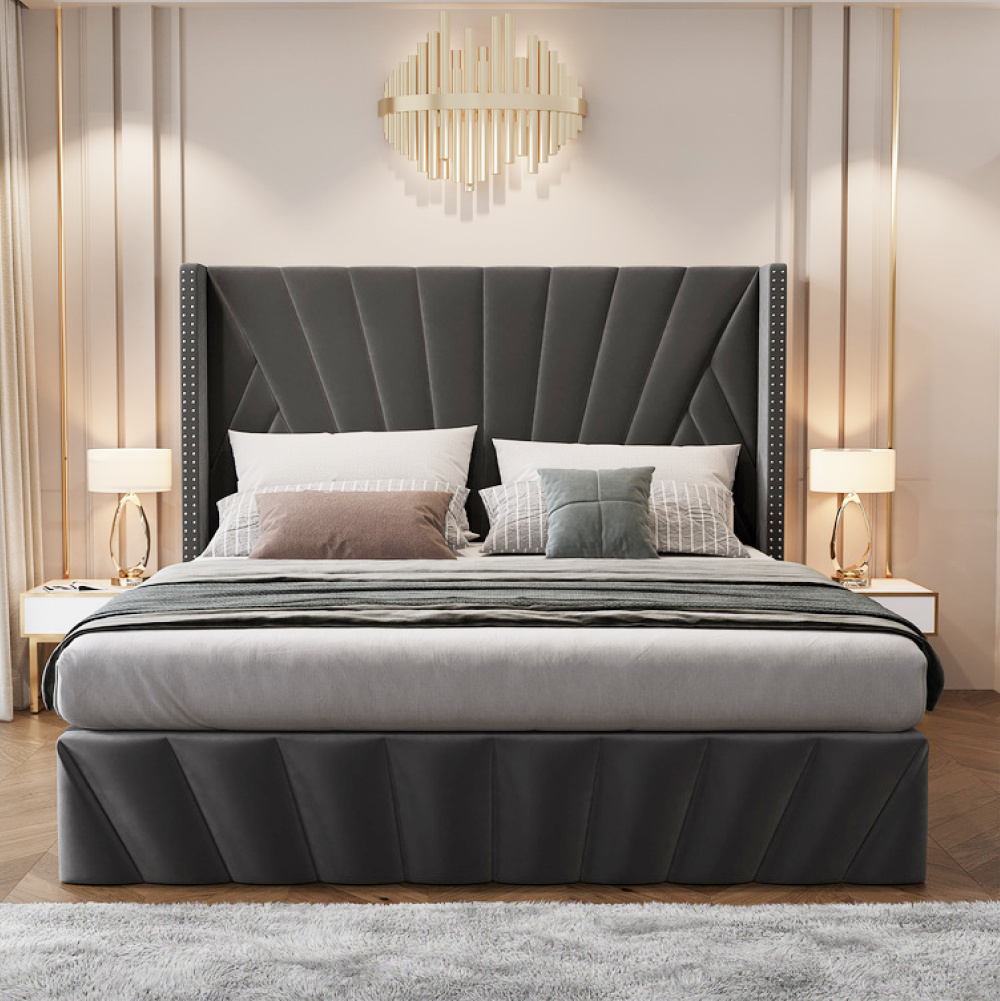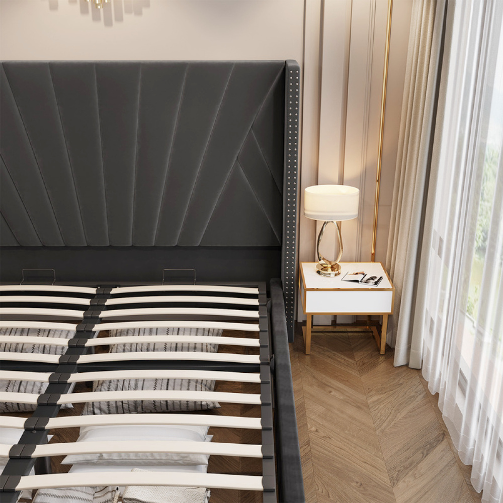Postel s roštem, 180x200, tmavě šedá Velvet látka, PENELOPE