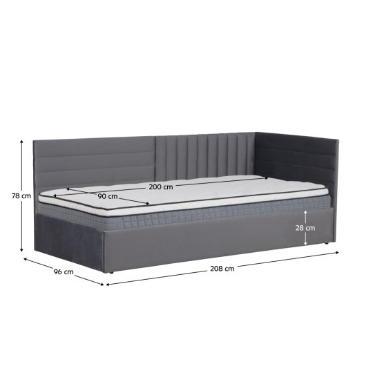 Postel s roštem, 90x200, šedá Velvet látka, MEVIA