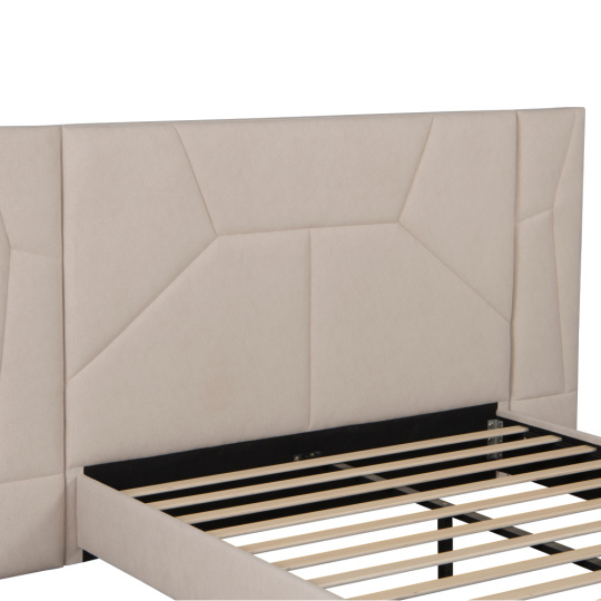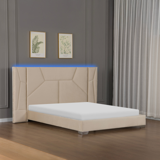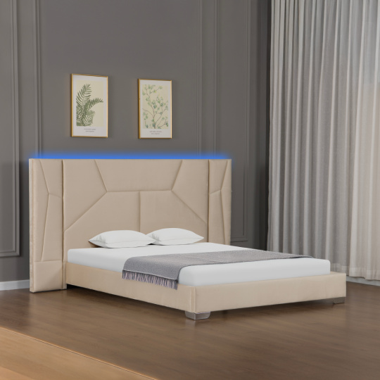 Postel s roštem a LED osvětlením, 160x200, béžová Velvet látka, ALTESA