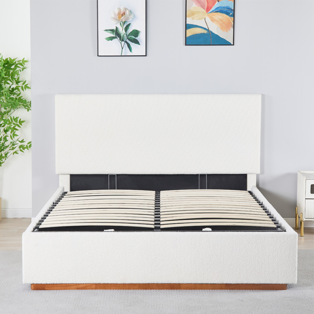 Materiál: látka Bouclé/MDF/překližka/kov Oděruodolnost textilie podle testu Martindale: 10 000 oděrů Barva: bílá Rozměry (ŠxHxV): 192x215x118 cm Plocha na spaní (ŠxD): 180x200 cm Výška po rošt: 33 cm Nosnost na lůžko: 110 kg S vysokým čelem Výška přední čelo: 31 cm Výška zadní čelo: 118 cm Výška spodní dřevěné části: 4 cm S úložným prostorem Úložný prostor nemá pevné dno, spodní část je překryta látkou Dodáváno s lamelovým vyklápěcím roštem Prostor mezi lamelami: 5,5 cm Plynové písty Dodáváno bez matrace Možnost zakoupit matrace z naší nabídky Doporučená výška matrace: 20 cm Zapuštění matrace: 2 cm Elegantní design Dodáváno v demontu