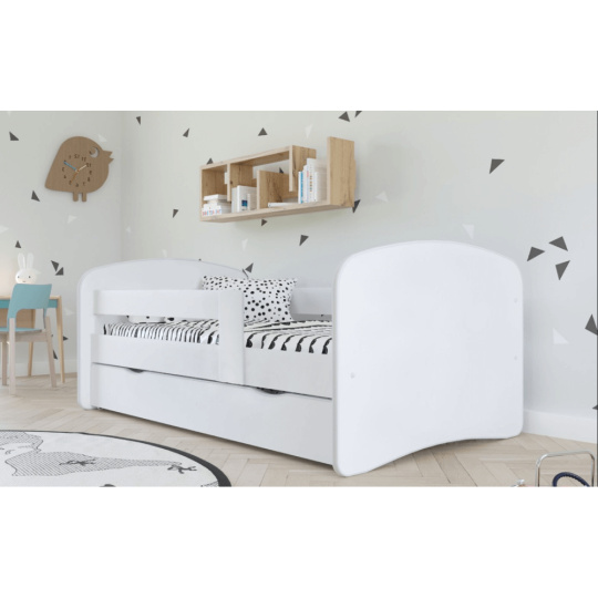 Materiál: laminovaná DTD Barva: bílá Rozměry (ŠxHxV): 165x90x61 cm Rozměry spaní (ŠxD): 80x160 cm Tloušťka materiálu: 1,8 cm Možnost namontovat zábranu na levou nebo pravou stranu Moderní a praktická S úložným prostorem Úložný prostor na kolečkách Dva šuplíky Hmotnost: 47 kg Nosnost: 60 kg Dodávána s lamelovým roštem Dodávána bez matrace Doporučená výška matrace: 15 cm Zapuštění matrace: 5,2 cm Dodávána v demontu