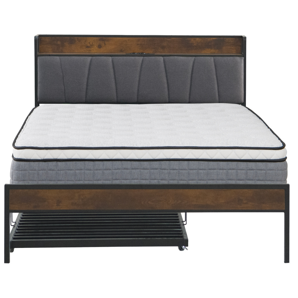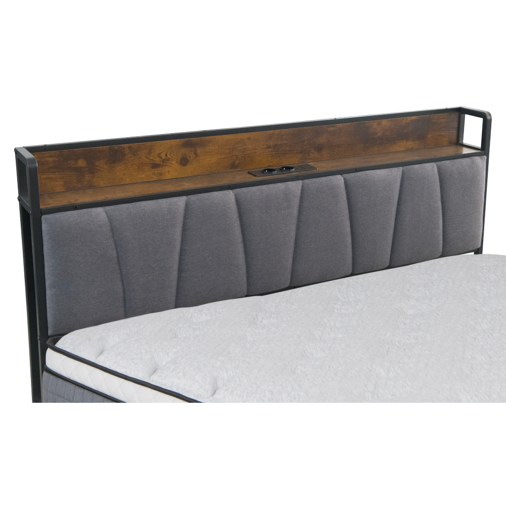 Materiál: kov/MDF/lněná tkanina Oděruodolnost textilie podle testu Martindale: 20 000 oděrů Barva: černá/rustikální dřevo/šedá Rozměry (ŠxHxV): 140x218,5x100 cm Plocha na spaní (ŠxD): 140x200 cm Nosnost na lůžko: 150 kg S policí Nosnost police: 20 kg 2× elektrická zásuvka 2× USB port Dodáváno s LED osvětlením Počet barev LED osvětlení: 16 S dálkovým ovladačem Dodávána s kovovým roštem Dodáváno bez matrace Doporučujeme zakoupit matraci z naší nabídky Doporučená výška matrace: 15-20 cm S přistýlkou Nosnost na přistýlku: 200 kg Na kolečkách Rozměry přistýlky (ŠxHxV): 90x200x9,5 cm Rozměr matrace na přistýlku: 90x200 cm Doporučená výška matrace na přistýlku: 15-18 cm Rustikální styl Dodáváno v demontu