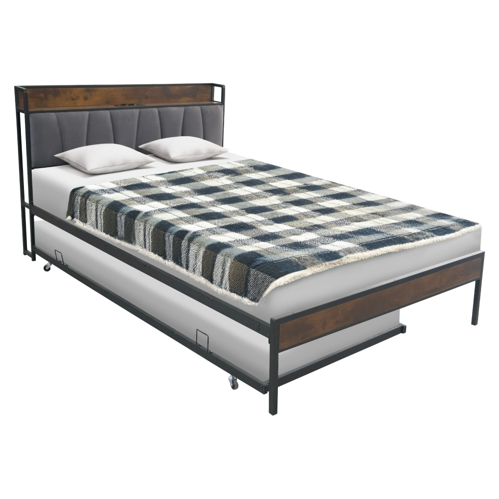 Postel s roštem a výsuvnou přistýlkou, 140x200, černá/šedá, NORDO