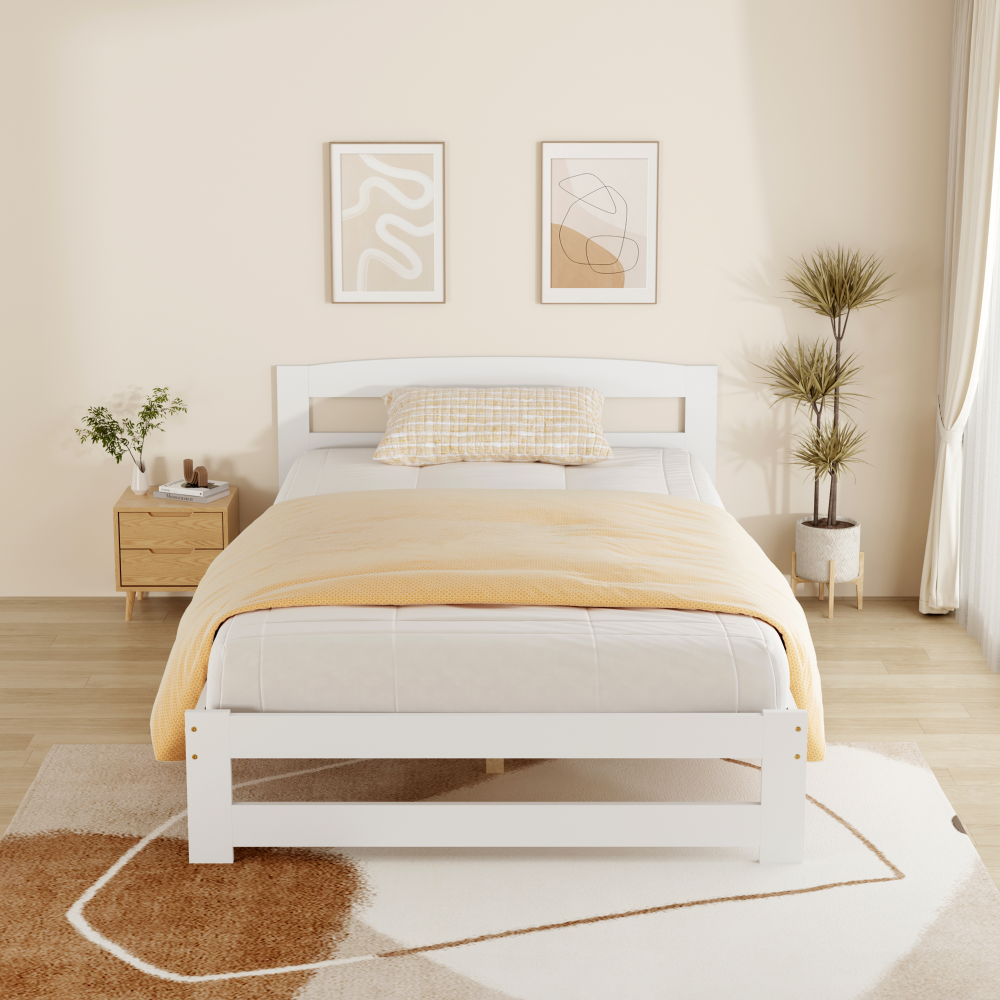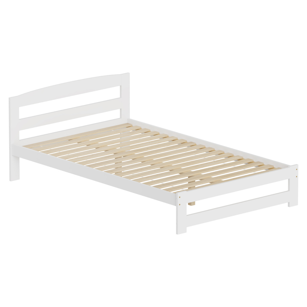 Materiál: borové dřevo Barva: bílá Rozměry (ŠxHxV): 126x204x69 cm Plocha na spaní (ŠxD): 120x200 cm Tloušťka materiálu: 2 cm Nosnost na lůžko: 90 kg Výška po rošt: 28 cm Na nožičkách Výška spodního prostoru od podlahy: 21 cm Dodávána s překližkovým rolovaným roštem Dodávána bez matrace Možnost zakoupit matraci z naší nabídky Doporučená minimální výška matrace: 7 cm Zapuštění matrace: 3 cm Jednoduchý design Praktická Dodáváno v demontu