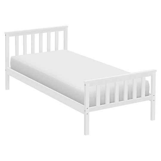 Materiál: borové dřevo Barva: bílá Rozměry (ŠxHxV): 98x207x82 cm Plocha na spaní (ŠxD): 90x200 cm Tloušťka materiálu: 2 cm Nosnost na lůžko: 90 kg Výška po rošt: 26 cm Na nožičkách Dodávána s překližkovým rolovaným roštem Dodávána bez matrace Možnost zakoupit matraci z naší nabídky Doporučená výška matrace: 7 cm Zapuštění matrace: 3 cm Jednoduchý design Praktická Dodáváno v demontu