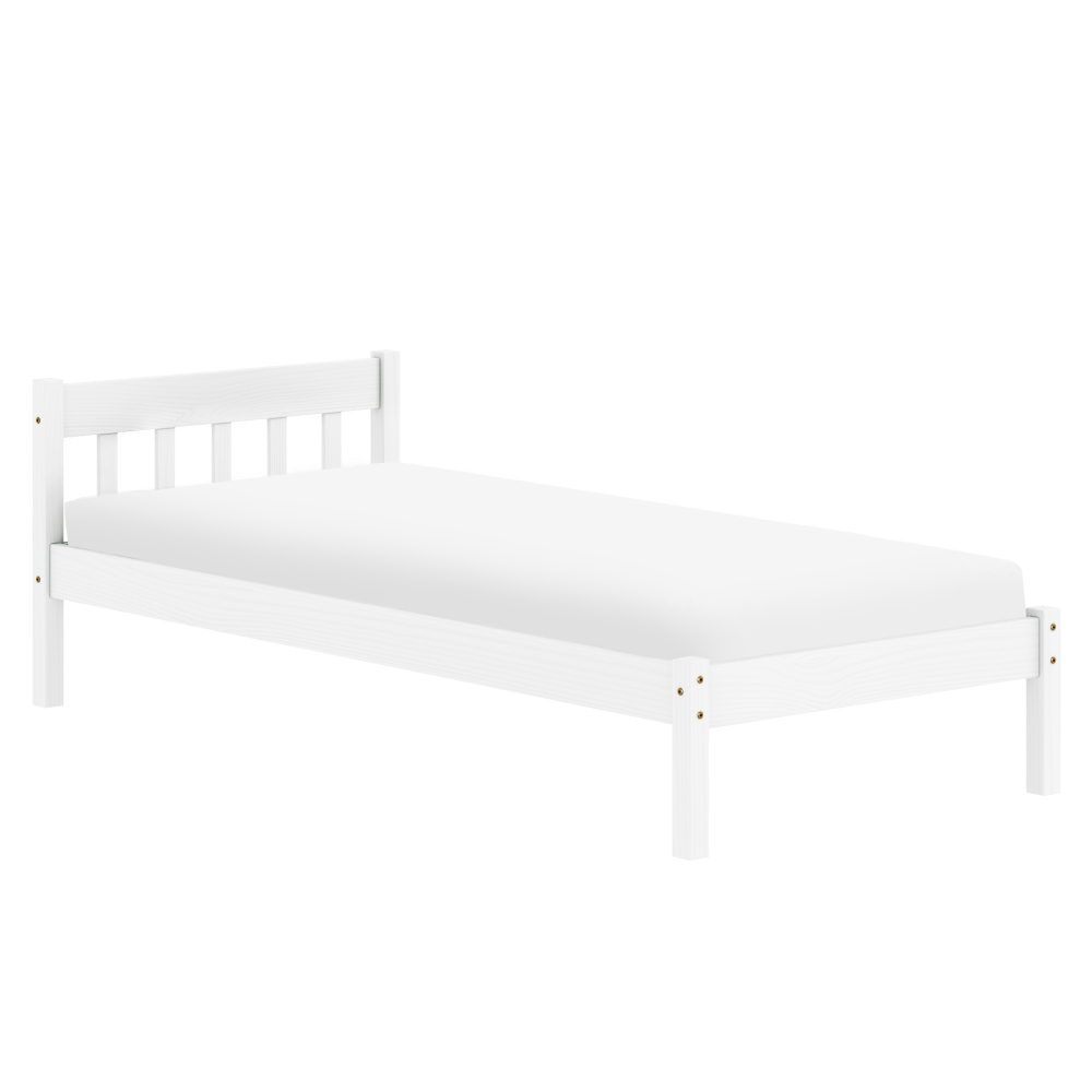 Materiál: masivní borové dřevo Barva: bílá Rozměry (ŠxHxV): 98,5x210x70 cm Plocha na spaní (ŠxD): 90x200 cm Tloušťka materiálu: 2,5 cm Nosnost na lůžko: 110 kg Výška po rošt: 29 cm Výška bočnice: 34,5 cm Na nožičkách Výška nožiček: 35 cm Tloušťka materiálu nohy: 5x5 cm Dodávána s rolovaným roštem Počet lamel: 14 ks Rozestup mezi lamelami: 7,5 cm Tloušťka materiálu lamely: 2 cm Dodáváno bez matrace Možnost zakoupit matrace z naší nabídky Doporučená výška matrace: 14 cm Zapuštění matrace: 6 cm Jednoduchý design Dodáváno v demontu