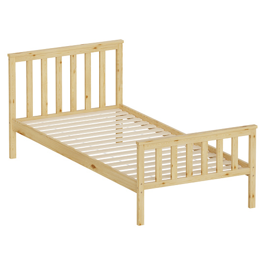 Materiál: borové dřevo Barva: přírodní Rozměry (ŠxHxV): 98x207x82 cm Plocha na spaní (ŠxD): 90x200 cm Tloušťka materiálu: 2 cm Nosnost na lůžko: 90 kg Výška po rošt: 26 cm Na nožičkách Dodávána s překližkovým rolovaným roštem Dodávána bez matrace Možnost zakoupit matraci z naší nabídky Doporučená výška matrace: 7 cm Zapuštění matrace: 3 cm Jednoduchý design Praktická Dodáváno v demontu