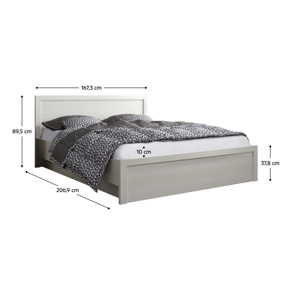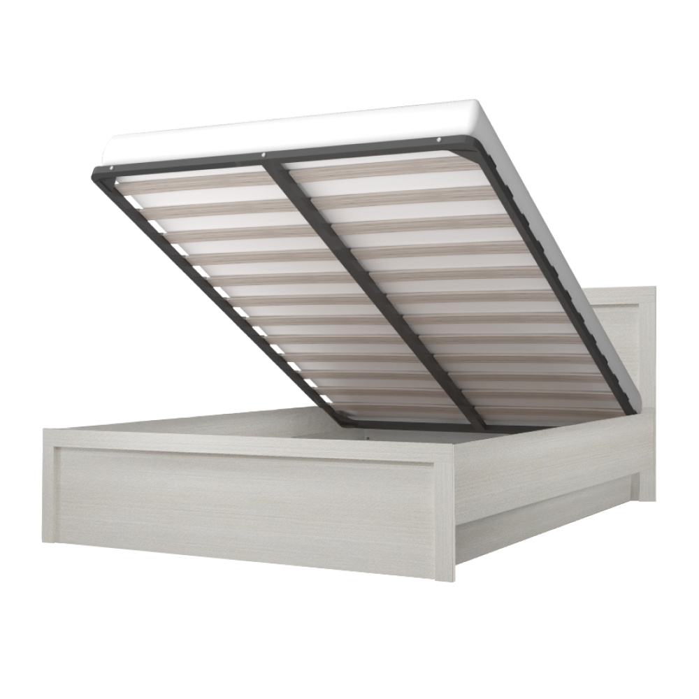 Materiál: DTD laminovaná Barva: bílá Rozměry (ŠxHxV): 167,3x206,9x89,5 cm Tloušťka materiálu: 1,6 cm Plocha na spaní (ŠxD): 160x200 cm Výška spaní: 37,8 cm Nosnost na osobu: 100 kg Doporučená minimální výška matrace: 10 cm Dodáváno bez matrace Možnost dokoupit matraci z naší nabídky Plastové nožičky S úložným prostorem Dodávána s výklopným roštem Kovový rám a dřevěné lamely Moderní design Dodáváno v demontu