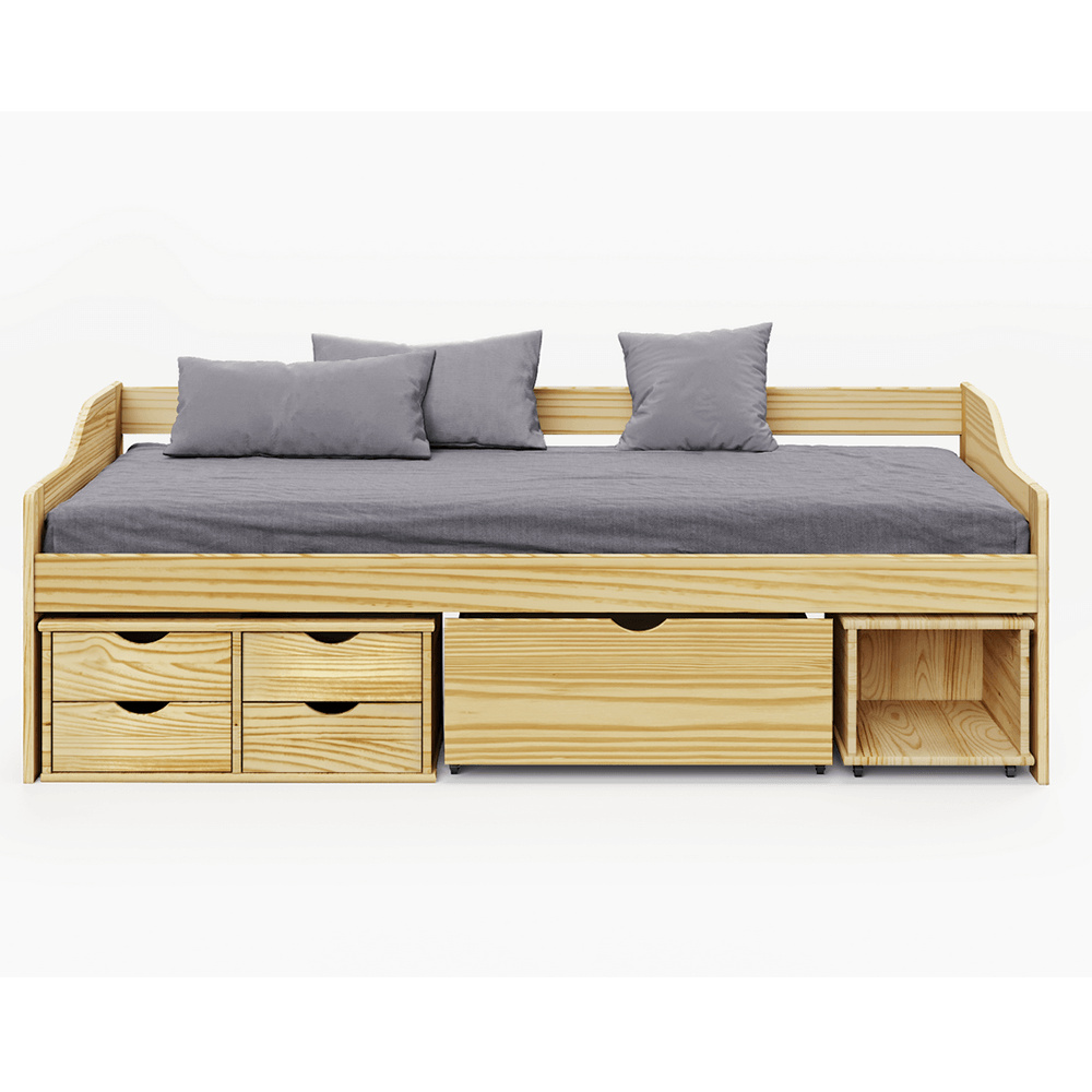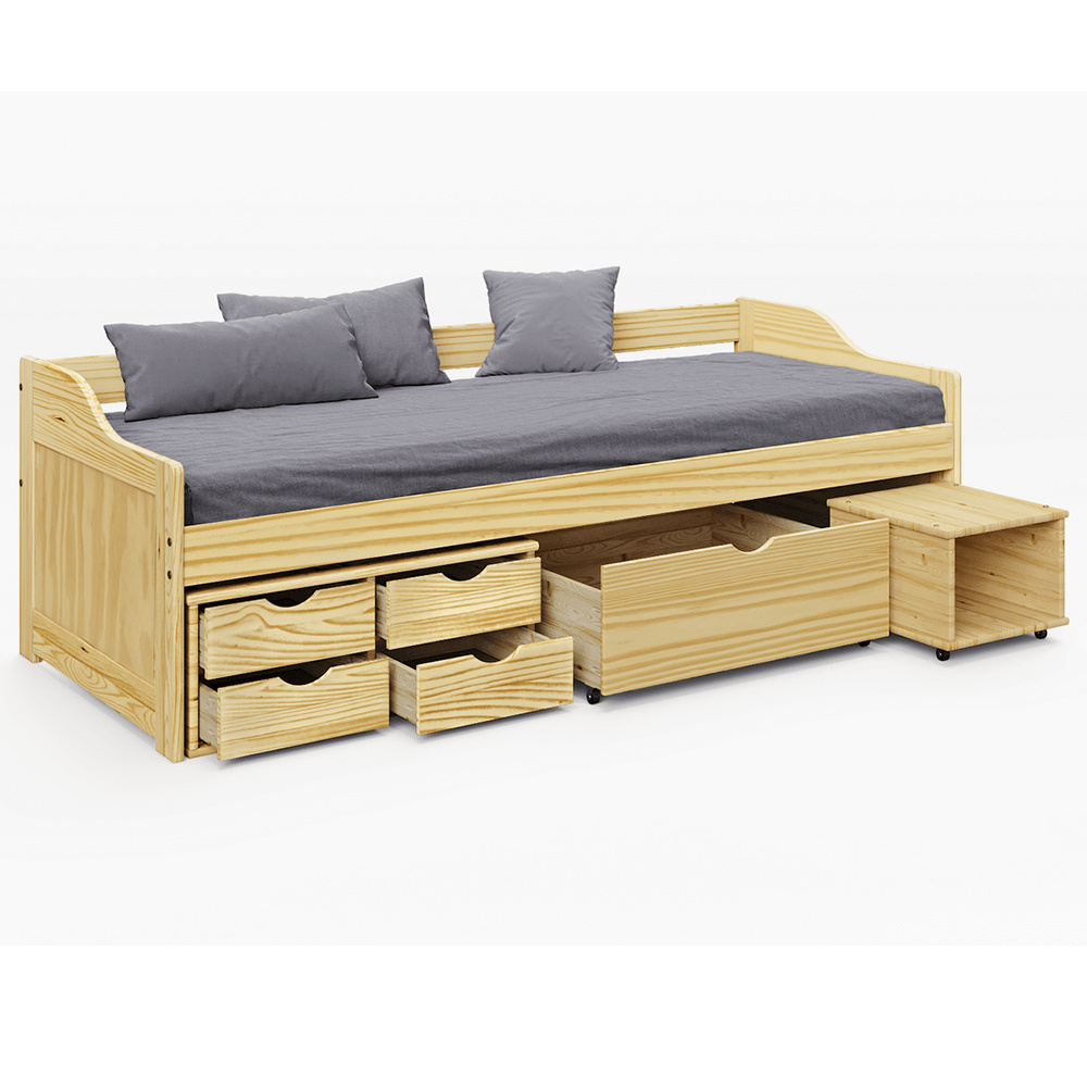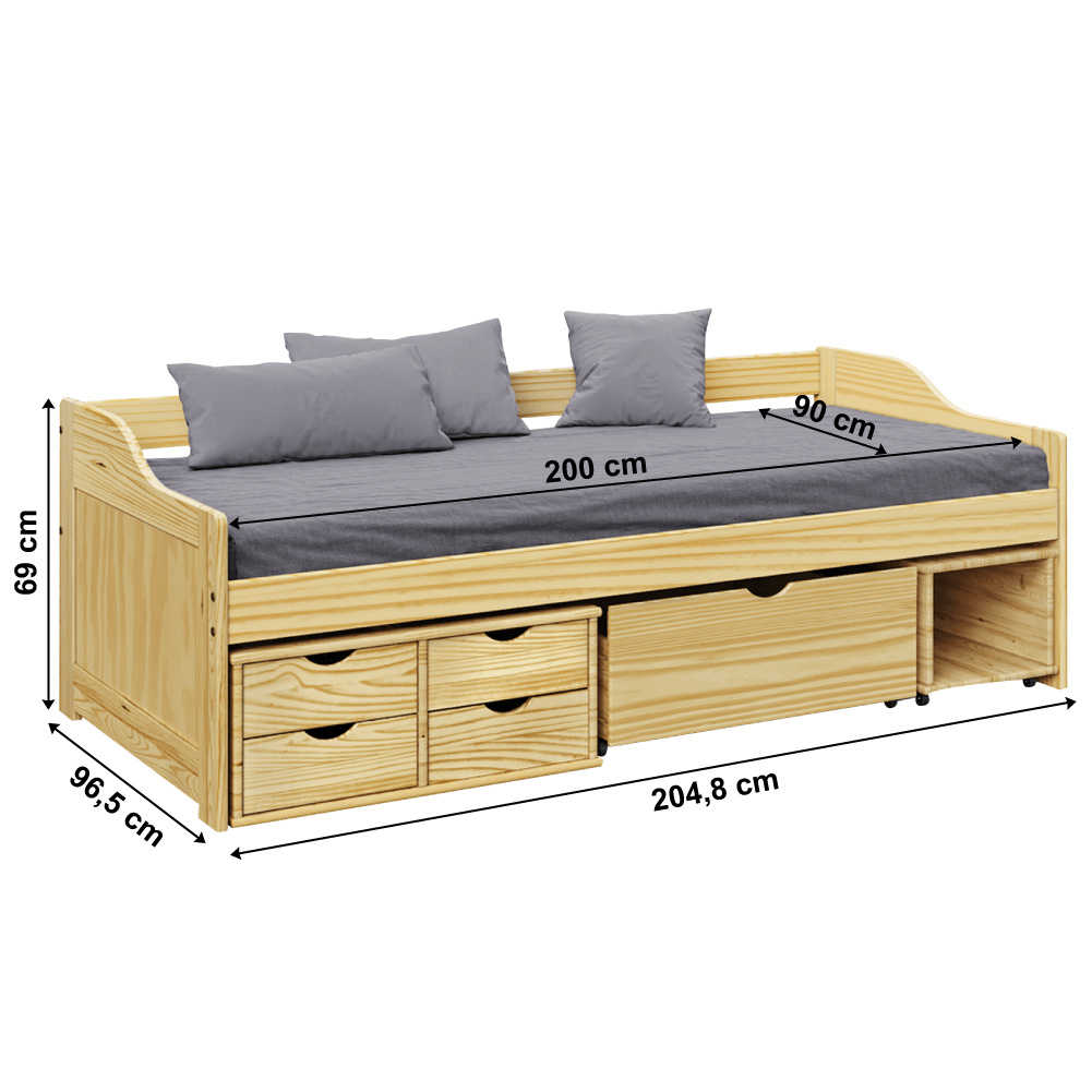 Postel s úložným prostorem, přírodní, masiv, 90x200, MAXI NEW