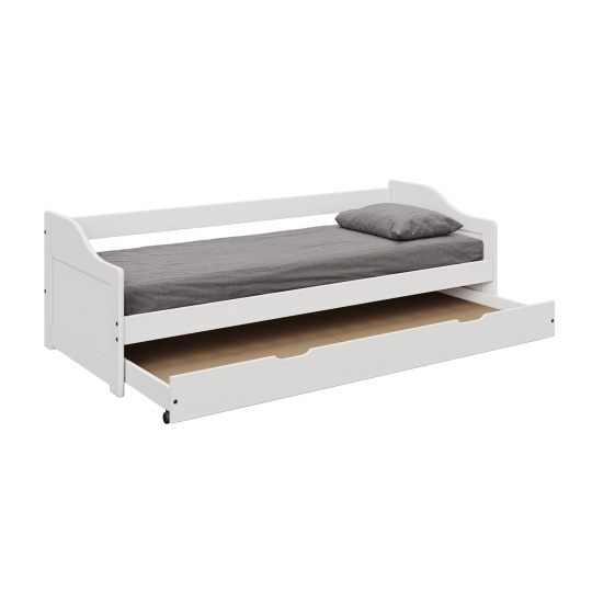 Postel s výsuvnou přistýlkou, bílá, masiv, 90x200, LAURA NEW