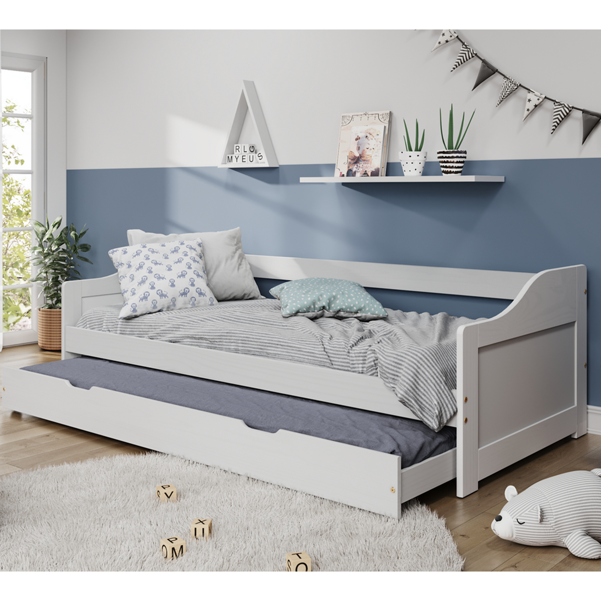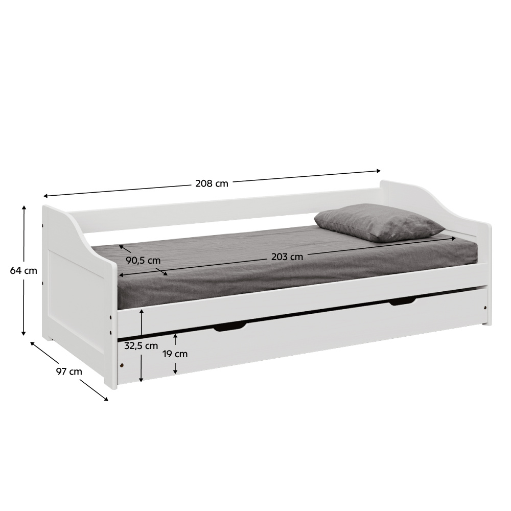 Postel s výsuvnou přistýlkou, bílá, masiv, 90x200, LAURA NEW