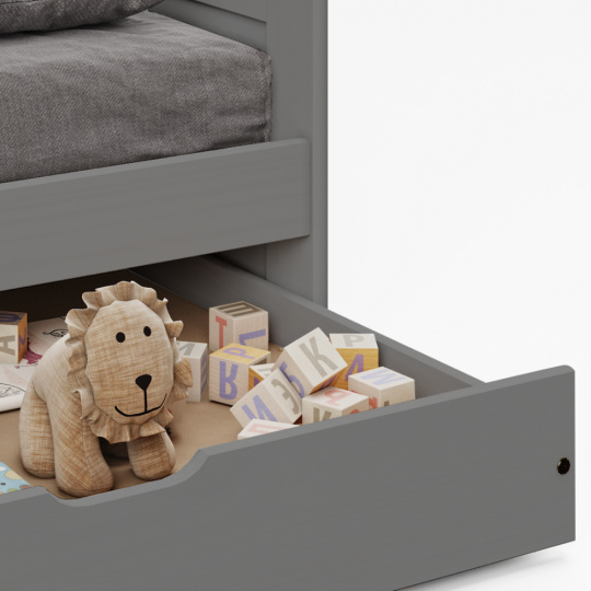 Postel s výsuvnou přistýlkou, šedá, masiv, 90x200, LAURA NEW