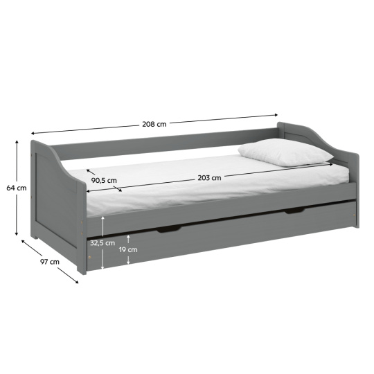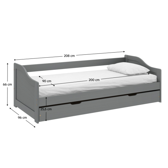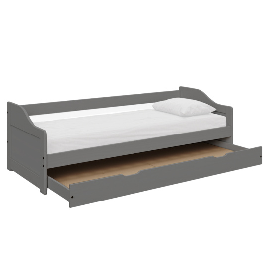 Postel s výsuvnou přistýlkou, šedá, masiv, 90x200, LAURA NEW