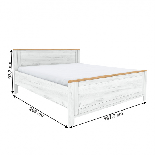 Materiál: DTD laminovaná Barva: dub craft zlatý / dub craft bílý Rozměry (ŠxHxV): 167,7x209x93,2 cm Tloušťka materiálu: 16 mm Nosnost: 110 kg Dodávané bez roštu Dodávané bez matrace Doporučujeme zakoupit matraci s minimální výškou 20 cm Dodávané v demontu