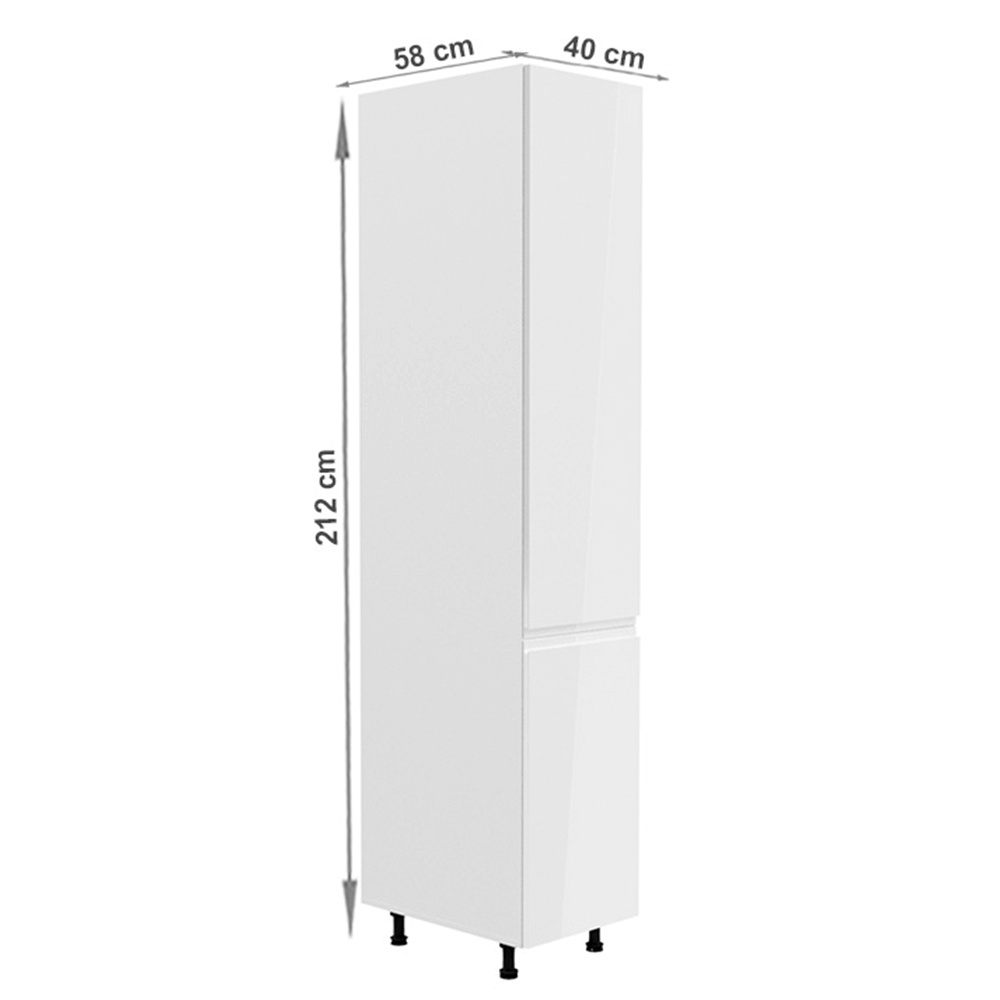 Potravinová skříňka, Aurora D60P Provedení: DTD laminové / MDF Barva: bílá / bílá extra vysoký lesk Rozměry (ŠxHxV): 60x58x212 cm Tloušťka materiálu: 15 mm Systém tichého zavírání dvířek S výsuvným kovovým košem Pravé provedení Pracovní deska není součástí skříněk. Je možné si doobjednat pracovní desku v provedení dub artisan o tloušťce 3