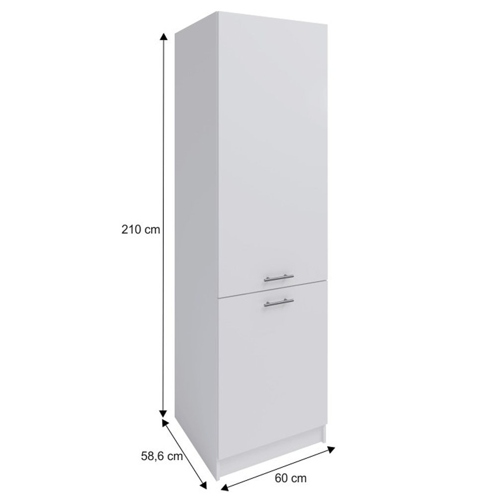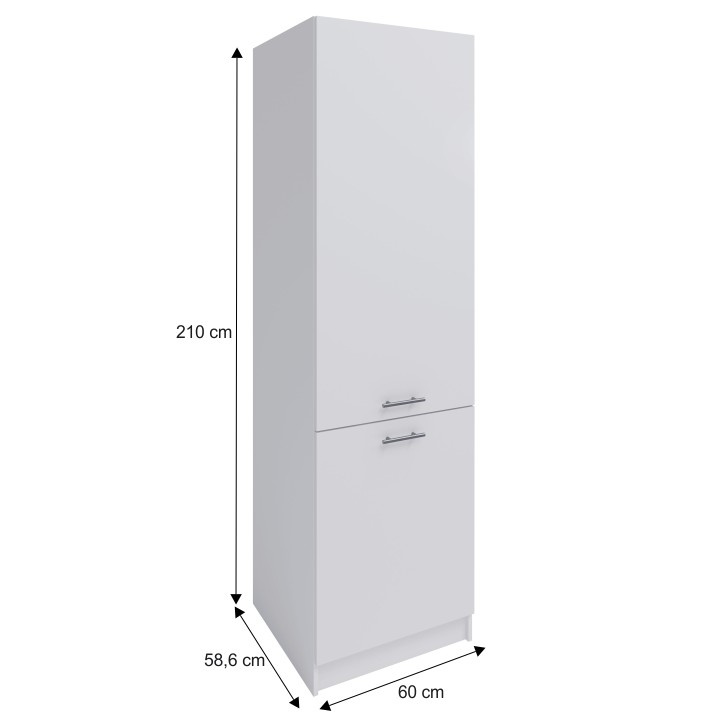 potravinová skříňka FABIANA Materiálové provedení: DTD laminovaná dřevotříska Barevné provedení: bílá Rozměry (ŠxHxV): 60x58,6x210 cm Dodávané v demontu. Možnost zakoupení pracovní desky Fabiana Metalic brown šedá s tloušťkou 2,8 cm, šířkou 60 cm a cenou za bm 1.390 Kč. Možnost dokoupení univerzálního L / P dřezu LAY ON.