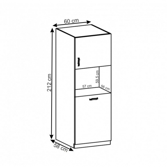 Materiál: DTD laminovaná / MDF Barva: bílá / šedá extra vysoký lesk Rozměry (ŠxHxV): 60x58x212 cm Tloušťka materiálu: 15 mm Vnitního rozměr na trubku (ŠxHxV): 57x56x59,5 cm S výsuvným kovovým košem Systém tichého zavírání dvířek Pravé provedení Pracovní deska není součástí skříněk. Je možné si doobjednat pracovní desku v provedení dub artisan o tloušťce 38 mm za 1.690 Kč/bm. Možnost dokoupit dřez, dřezovou baterii a příslušenství. Ke spodním skříňkám máte možnost dokoupit spodní lištu/sokl v bílé barvě o rozměru 1 bm za 210 Kč nebo 2 bm za 420 Kč a ukončení na sokl o hloubce 47 cm nebo 58 cm za 140 Kč. Ke každé dolní skříňce, kromě D25PZ, je třeba doobjednat 2 ks úchytek na sokl - cena 30 Kč/2ks.