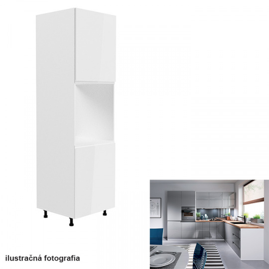 Potravinová skříňka, bílá / bílá extra vysoký lesk, pravá, AURORA D60P