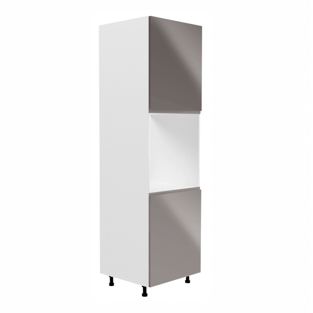 Skříňka na lednici, Aurora D60ZL Provedení: DTD laminové / MDF Barva: bílá / šedá extra vysoký lesk Rozměry (ŠxHxV): 60x58x212 cm Horní dvířka: 130x59,6 cm Dolní dvířka: 71,3x59,6 cm Tloušťka materiálu: 15 mm Vnitřní rozměry na chladničku (ŠxHxV): 57x56x199 cm Systém tichého zavírání dvířek Pracovní deska není součástí skříněk. Je možné s