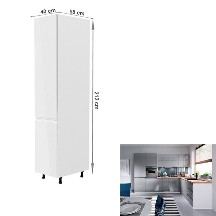 Potravinová skříňka, Aurora D40SP Provedení: DTD laminové / MDF Barva: bílá / šedá extra vysoký lesk Rozměry (ŠxHxV): 40x58x212 cm Tloušťka materiálu: 15 mm Systém tichého zavírání dvířek potřebné doobjednat 2 ks úchytů na sokl - cena 40 Kč / 2ks Pracovní deska není součástí skříněk. Je možné si doobjednat pracovní desku v provedení dub artisan o tloušťce 38 mm za 1.690 Kč/bm. Možnost dokoupit dřez, dřezovou baterii a příslušenství. Ke spodním skříňkám máte možnost dokoupit spodní lištu/sokl v bílé barvě o rozměru 1 bm za 280 Kč nebo 2 bm za 560 Kč a ukončení na sokl o hloubce 47 cm nebo 58 cm za 210 Kč. Ke každé dolní skříňce, kromě D25PZ, je třeba doobjednat 2 ks úchytek na sokl - cena 40 Kč/2ks.