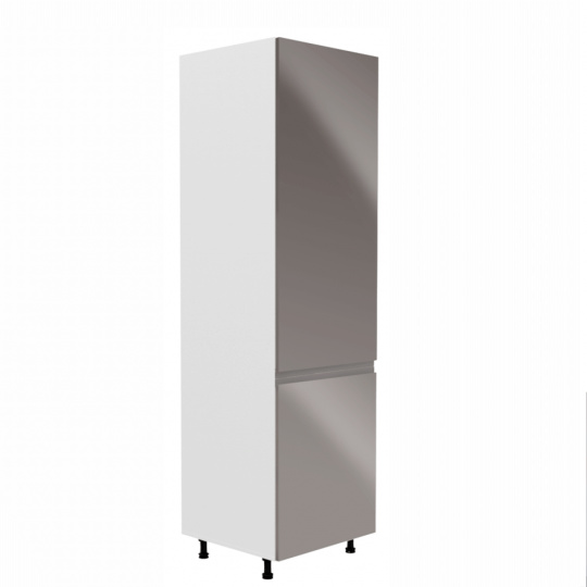 Skříňka na lednici, Aurora D60ZL Provedení: DTD laminové / MDF Barva: bílá / šedá extra vysoký lesk Rozměry (ŠxHxV): 60x58x212 cm Horní dvířka: 130x59,6 cm Dolní dvířka: 71,3x59,6 cm Tloušťka materiálu: 15 mm Vnitřní rozměry na chladničku (ŠxHxV): 57x56x199 cm Systém tichého zavírání dvířek Pracovní deska není součástí skříněk. Je možné s