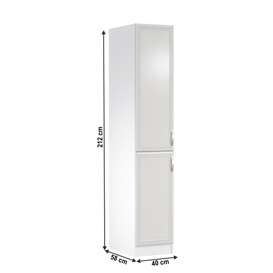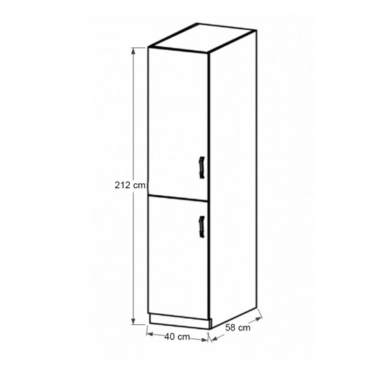 Potravinová skříňka D40SP ke kuchyni SICILIA Provedení: DTD laminovaná / MDF lišty Barva: bílá / sosna Andersen Rozměry (ŠxHxV): 40x58x212 cm Tloušťka materiálu: 15 mm levé provedení Spodní skříňky jsou dodávány bez pracovní desky. Můžete si objednat pracovní desku royal beigemarble k provedení ořech Milano - tloušťka 28mm za 1.590 Kč/bm a nebo pracovní desku dub Lancelot k provedení sosna andersen - tloušťka 38 mm za 1.690 Kč/bm.