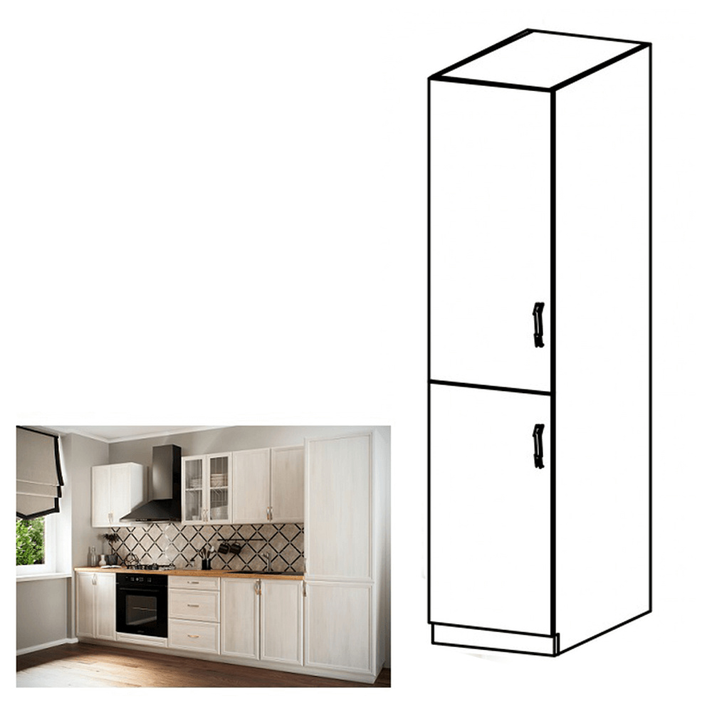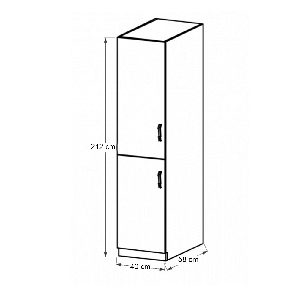Potravinová skříňka D40SP ke kuchyni SICILIA Provedení: DTD laminovaná / MDF lišty Barva: bílá / sosna Andersen Rozměry (ŠxHxV): 40x58x212 cm Tloušťka materiálu: 15 mm levé provedení Spodní skříňky jsou dodávány bez pracovní desky. Můžete si objednat pracovní desku royal beigemarble k provedení ořech Milano - tloušťka 28mm za 1.590 Kč/bm a nebo pracovní desku dub Lancelot k provedení sosna andersen - tloušťka 38 mm za 1.690 Kč/bm.
