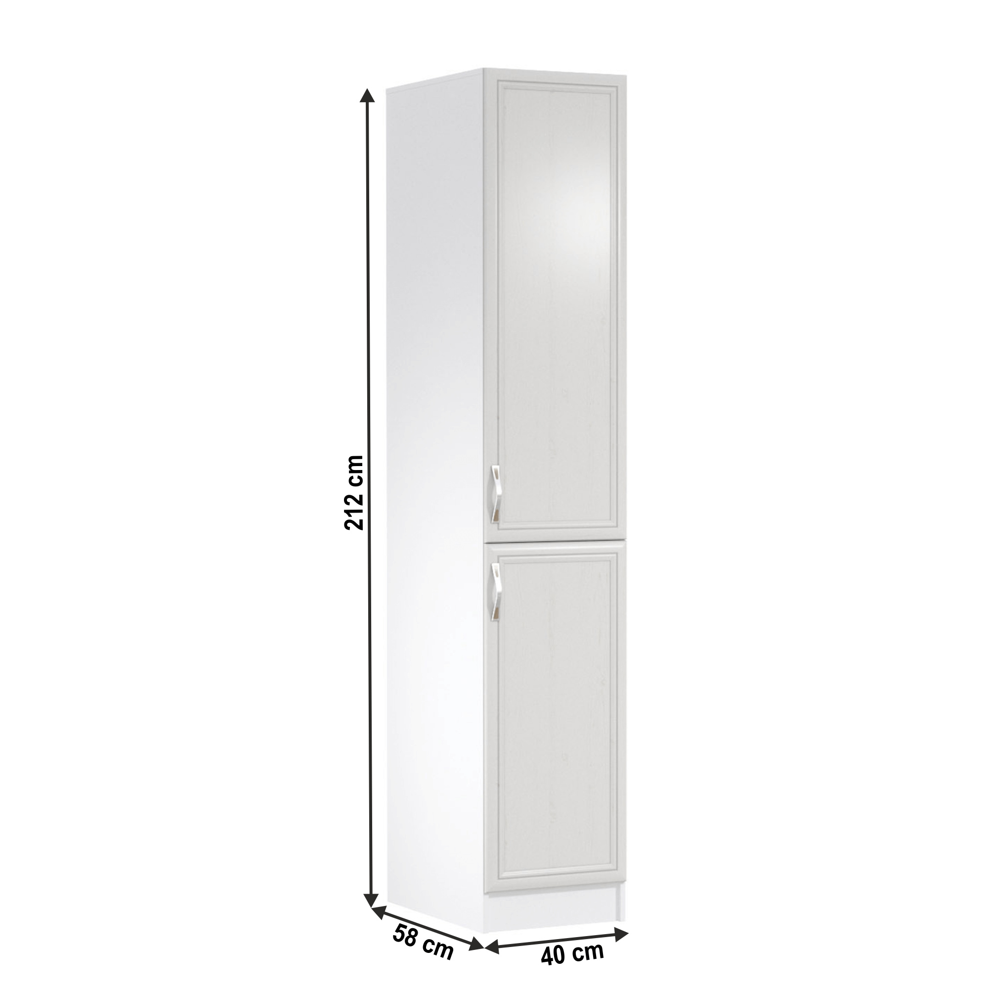 Potravinová skříňka D40SP ke kuchyni SICILIA Provedení: DTD laminovaná/MDF lišty Barva: bíla/sosna Andersen Rozměry (ŠxHxV): 40x58x212 cm Tloušťka materiálu: 15 mm Pravé prevedenie Spodní skříňky jsou dodávány bez pracovní desky. Můžete si objednat pracovní desku royal beigemarble k provedení ořech Milano - tloušťka 28mm za 1.790 Kč/bm a nebo pracovní desku dub Lancelot k provedení sosna andersen - tloušťka 38 mm za 1.890 Kč/bm.