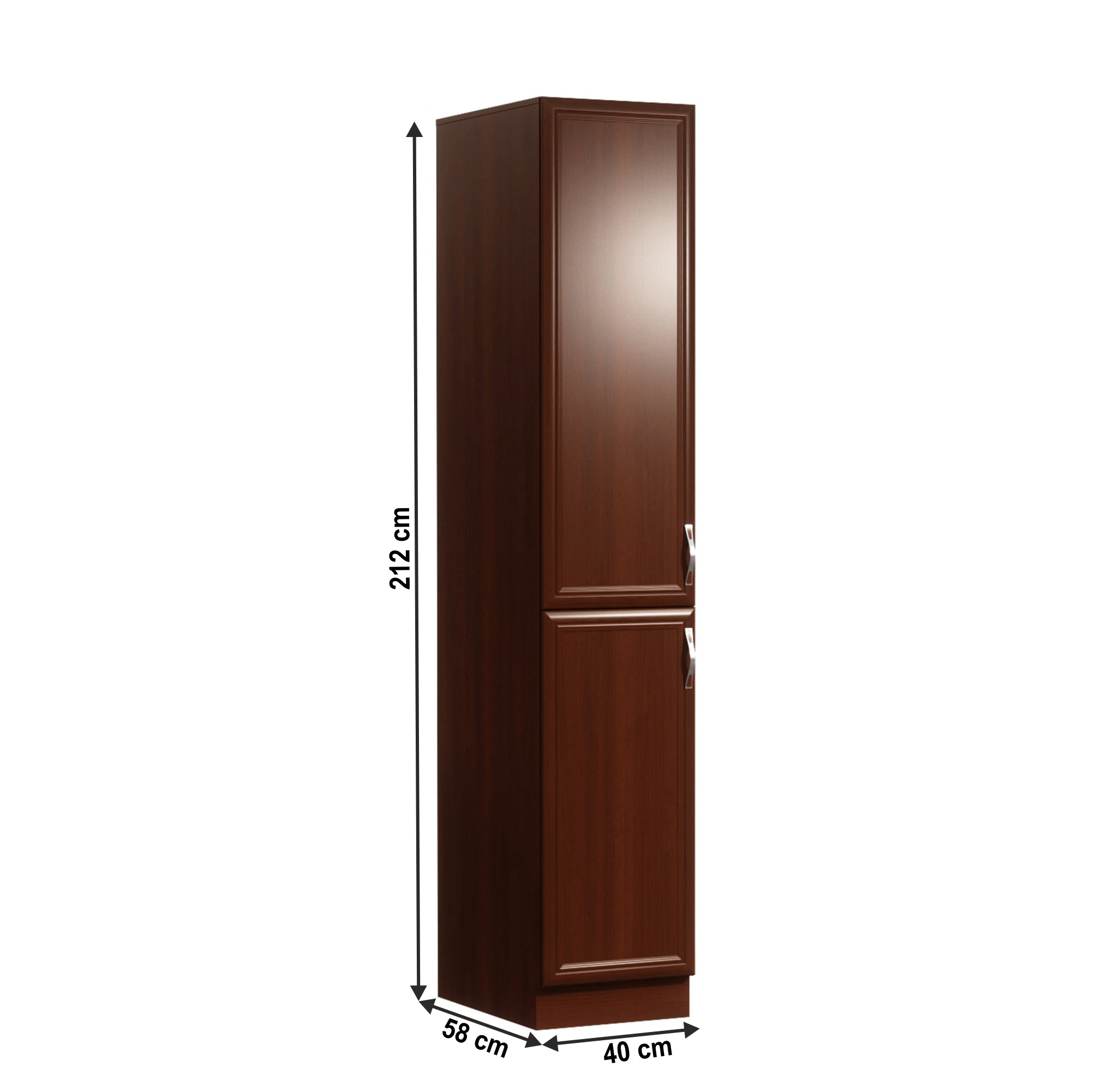 Potravinová skříňka D40SP ke kuchyni SICILIA Provedení: DTD laminovaná / MDF lišty Barva: ořech Milano Rozměry (ŠxHxV): 40x58x212 cm Tloušťka materiálu: 15 mm levé provedení Spodní skříňky jsou dodávány bez pracovní desky. Můžete si objednat pracovní desku royal beigemarble k provedení ořech Milano - tloušťka 28mm za 1.590 Kč/bm a nebo pracovní desku dub Lancelot k provedení sosna andersen - tloušťka 38 mm za 1.690 Kč/bm.