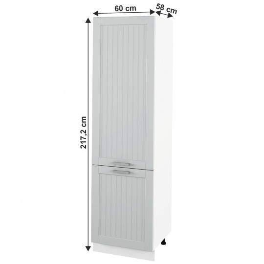 Materiál skříňka: DTD laminovaná / MDF fóliovaná Barva skříňka: světlešedá / bílá Materiál úchytky: kov Barva úchytky: matný chrom Rozměry (ŠxHxV): 60x58x217,2 cm Tloušťka materiálu: 16 mm policová S dvířky S nožičkami S kovovými úchyty Kvalitní slovenský výrobek Dodávané v demontu Cena sektorových skříněk je včetně soklů, bez pracovní desky. Cena za pracovní desku je 1.290,-Kč za bm - tloušťka 38 mm.