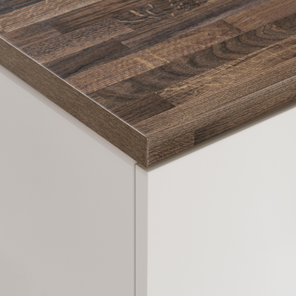 Materiál: laminovaná DTD Barva: dub Porterhouse tmavý Tloušťka pracovní desky: 3,8 cm Hloubka pracovní desky: 60 cm Minimální požadovaná délka desky: 0,1 m Maximální požadovaná délka desky: 4,1 m Odolná vůči poškození Odolná vůči mechanickému opotřebení Odolná vůči světlu a vlhkosti Odolná vůči zvýšené teplotě až do 180 °C Hygienicky nezávadný povrch Vhodná pro přímý kontakt s potravinami Jednoduchá údržba Hrany jsou precizně ohraněné zažehlovací páskou Lze ji přizpůsobit na míru podle požadovaných rozměrů Kompatibilní Výroba pracovní desky na míru je závazná Platbu je třeba uhradit předem v plné výši Dodocí lhůta: 10 pracovních dnů