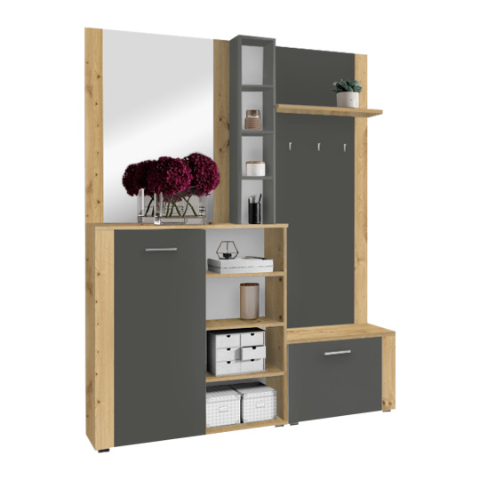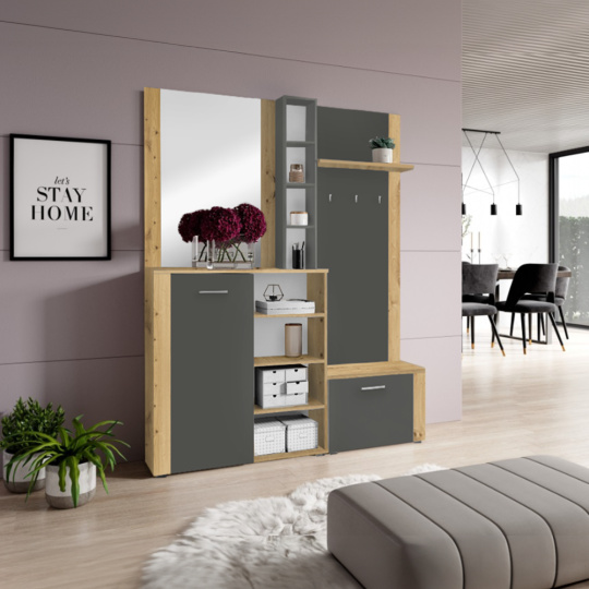 Předsíňová sestava, dub artisan/grafit, FANDU