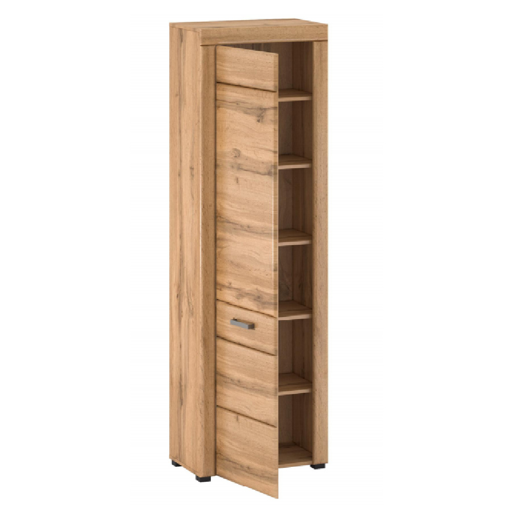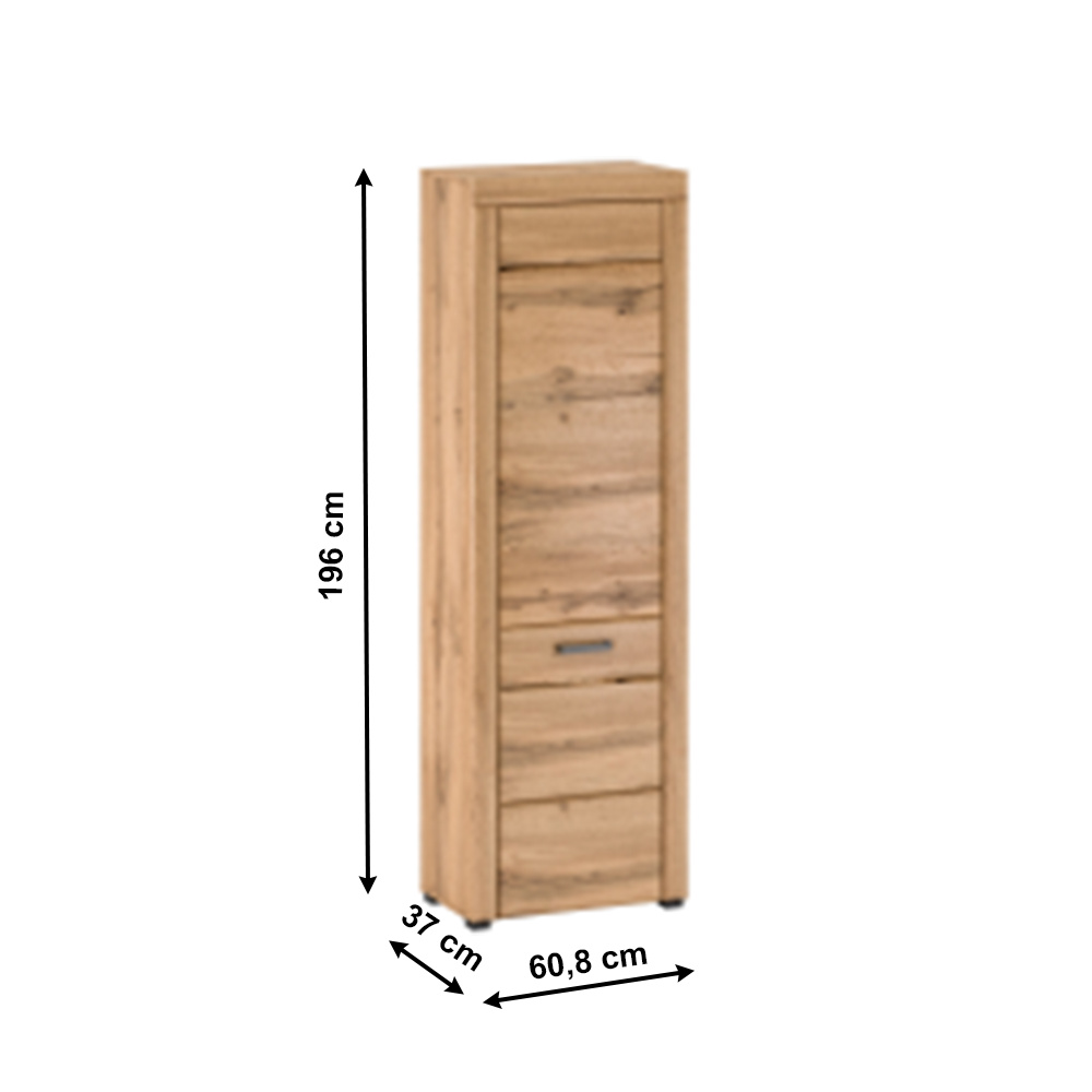 Materiál: laminovaná DTD / MDF fóliovaná/kov Farebné provedení: dub apalačský Rozmery (ŠxHxV): 60,8x37x196 cm Hrúbka materiálu: 1,9 cm Nosnosť policie: 5 kg S kovovou úchytkou Jednodverová Zatvorená Policová 5 políc Množstvo úložného priestoru Elegantné nožičky Kvalitné spracovanie Dodávané v demonte