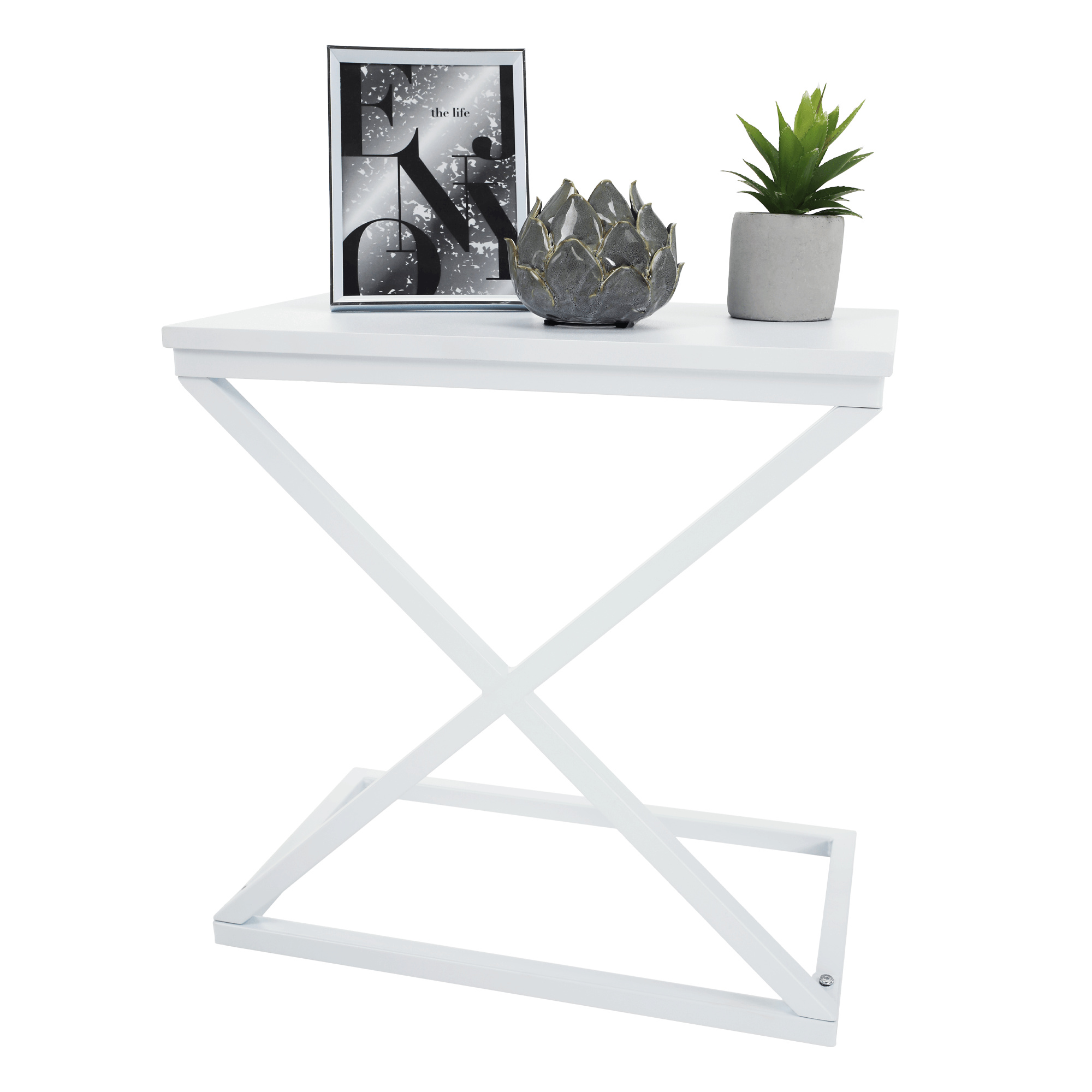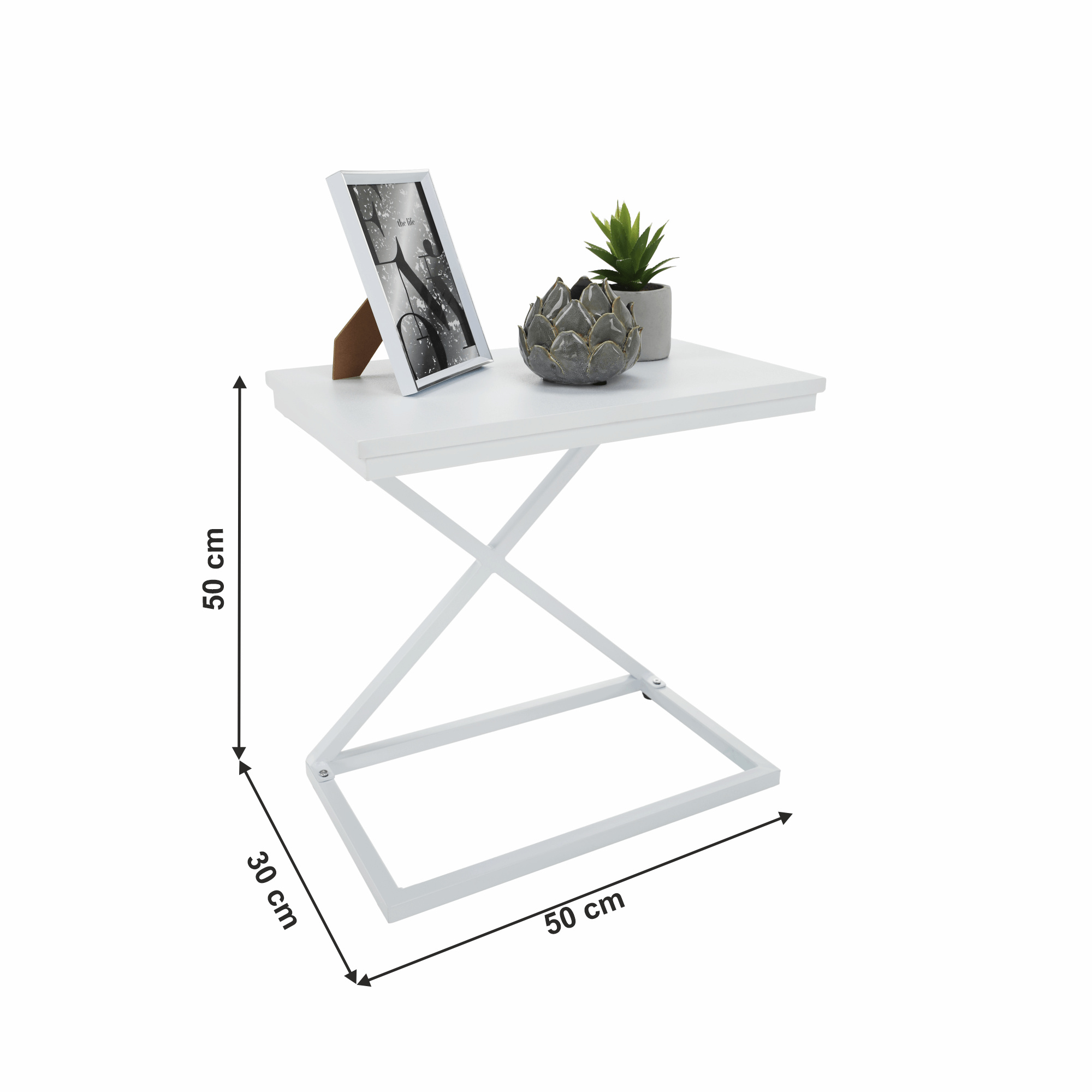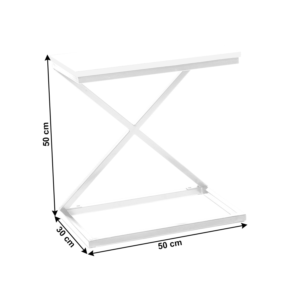Materiál: MDF / kov Barva: bílá Rozměry (ŠxHxV): 50x30x50 cm Nosnost: 5 kg bez šuplíku příruční stolek noční stolek industriální styl Dodávané v demontu